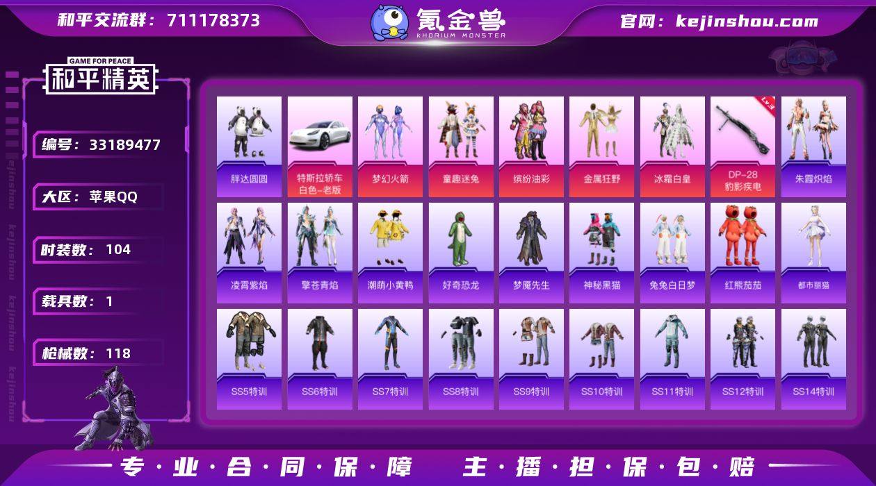 苹果【小号 粉装-梦幻火箭,粉装-缤纷油彩,套装-胖达圆圆,特斯拉Model 3(珍珠白)】 手Q-5粉装-1特效枪-1载具-2粉色飞行器-38940热力值-3王牌印记-104套装-118枪皮 【热门品类】:粉装-梦幻火箭,粉装-童趣迷兔,粉装-缤纷油彩,套装-胖达圆圆,套装-潮萌小黄鸭,套装-红熊茄茄 【粉色套装】:粉装-梦幻火箭,粉装-金属狂野,粉装-缤纷油彩,粉装-冰霜白皇,粉装-童趣迷兔 【粉色枪皮等级】:DP-28-豹影疾电(三级) 【粉色载具】:特斯拉Model 3(珍珠白) 【粉色枪皮】:DP-28-豹影疾电 【粉色飞行器】:炫彩糖果飞行器,梦幻火箭飞行器 【粉色降落伞】:炫紫旋律降落伞,童趣迷兔降落伞,洛神天依降落伞,海螺星光降落伞,喜羊羊与灰太狼降落伞,炫彩糖果降落伞 【稀有套装】:套装-炫彩糖果,角色-都市丽猫,套装-朱霞炽焰,套装-凌霄紫焰,套装-擎苍青焰 【稀有枪皮】:AKM-破晓战魂,AKM-霓虹街区,M16A4-快乐主宰,SCAR-L-炫彩节奏,SCAR-L-红色方程式,M416-夜灯,M416-糯团青竹,M416-红色方程式,M416-蓝色火焰,GROZA-治愈之星,GROZA-黑色刀锋,AUG-耀粉歌者,QBZ-神秘黑猫,QBZ-诡娃娃,QBZ-赛罗,M762-奇异狩猎者,M762-拳皇97,M762-牛气冲天,M762-第五大道...
