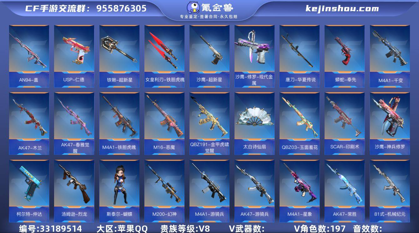 V8/22王者350英雄/王者之戮+拉丝皮/王者之心/王者之影/王者之尊/王者之狱/王者之烈*2/王者之灵+白金血钻/王者之隐+冰皮/王者之啸+拉丝皮/王者之击/王兽手雷烟雾弹/雷暴王者手雷/王影闪光烟雾*2/M4星象/AN94盖/M4游骑兵/81机械纪元/M200幻神/M200竞技荣光/VEPR12宙斯/堕天神COP/5屠龙/墨刃幻神/炽芒蝶刃/角色/子涵+防闪/蝉/消灭音效/炎龙铠甲/焰火贺岁/赏金猎人/狙击枪线/HeartShot/
