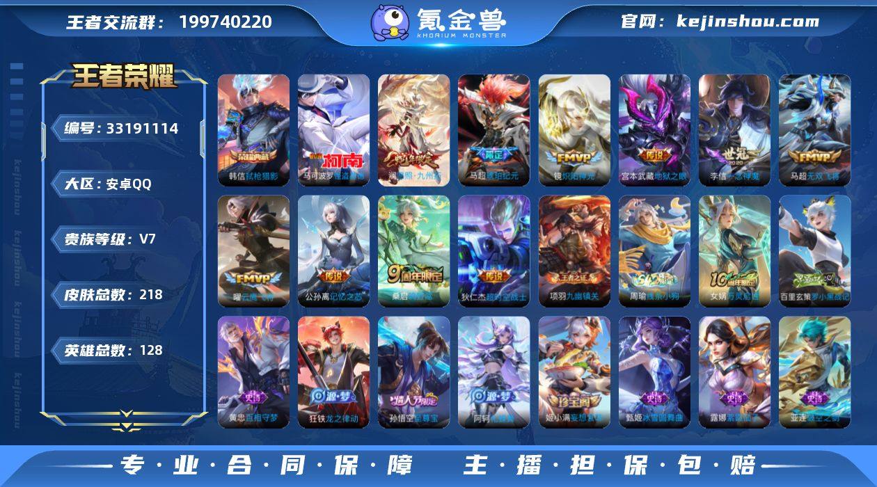 安卓Q-V7-永恒钻石IV段位-128英雄-218皮肤-1典藏皮肤-1珍品传说-10传说-57史诗 【英雄全皮】:孙权全皮,敖隐全皮 【荣耀典藏】:韩信弑枪猎影 【珍品传说】:马可波罗怪盗基德 【传说皮肤】:澜愿照九州拓,桑启鸣野蒿,马超琥珀纪元,公孙离记忆之芯,马超无双飞将,镜炽阳神光,曜云鹰飞将,李信一念神魔,宫本武藏地狱之眼,狄仁杰超时空战士 【限定皮肤】:白起狰,姜子牙天穹之誓,李白谪仙醉月,狄仁杰阴阳师,赵云皇家上将,孙尚香蔷薇恋人,庄周高山流水,芈月重明,元歌无心,夏侯惇朔风刀,甄姬游园惊梦,曹操烛龙,典韦穷奇,狄仁杰魔术师,达摩沙漠行僧,项羽海滩派对,老夫子醍醐杖,兰陵王金庭之子,孙悟空至尊宝,牛魔御旌,李元芳云中旅人,钟馗驱傩正仪,杨玉环遇见飞天,太乙真人饕餮,鬼谷子五谷丰年,苏烈千军破阵,百里玄策原初追逐者,弈星混沌棋,梦奇顽趣,沈梦溪大漠名商,明世隐疑决卦,裴擒虎李小龙,裴擒虎擒涛扼浪,狂铁御狮,米莱狄御霄,盾山御銮,上官婉儿梁祝,鲁班大师探海日志,桑启海盐诗旅,阿古朵江河有灵,张良古海寻踪,鬼谷子天穹祈灯,马超琥珀纪元,姬小满妄想食味,沈梦溪龙舞盛年 【年限皮肤】:澜愿照九州拓 【赛季限定】:白...