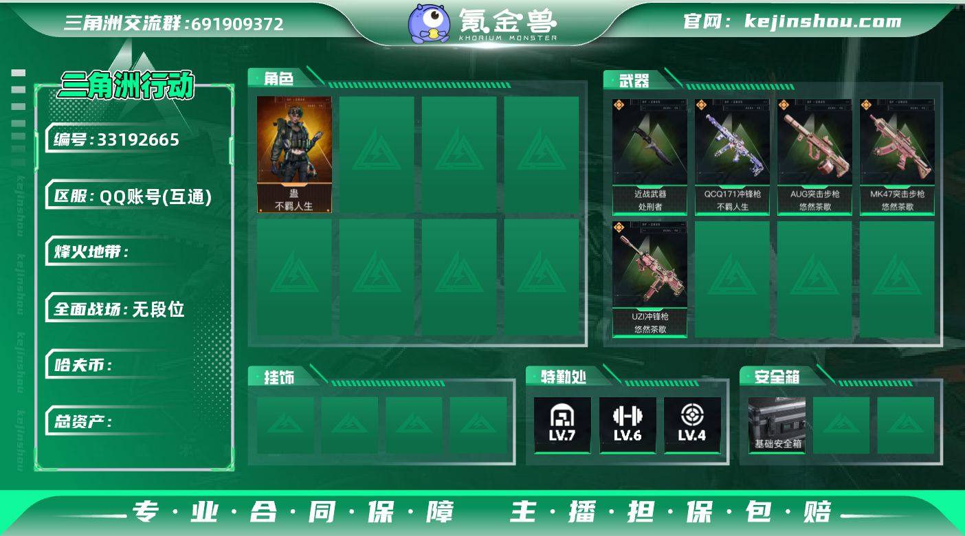 【总资产139.39M 哈弗币1亿 干员外观1个 烽火50级 钻石】仓库139.4M 现金103M 黑鹰,处刑者 蛊-不羁人生 AUG突击步枪-悠然茶歇,MK47突击步枪-悠然茶歇,UZI冲锋枪-悠然茶歇,QCQ171冲锋枪-不羁人生 德 挂凌工作青 df33-11,编号:WPVYG73