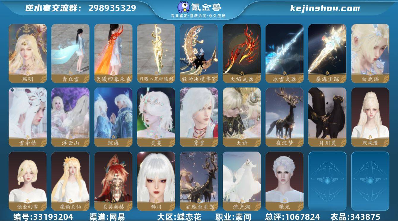 【区服】 惊鸿照影 【充值称号】 卧看千山 【已用天赏石】 50 【天霓染数量】 8 【天霓染】 曦光*1, 焕曜旋煌*1, 无常白袍*1, 琼海*1, 燕尾拂枝*1, 古道西风*1, 芊芊*1, 倾心*1 【时鉴赏】 时鉴赏一期11级 【转盘外观】 曦光 【稀有道具】 浑天劫 【天赏发型】 灵蔓, 煦风漫, 琼海, 浮云山, 蚀金幻雾, 雪牵情, 魔韵灵仙, 白鹿谣, 炎冥赫赫, 鳞川, 熙明, 天祈, 霁雪 【天赏祥瑞】 玄鹿垂星驾, 月川灵, 流光溯, 夜沉梦 【天赏外观】 火焰武器, 雷霆武器, 海市蜃楼武器, 冰雪武器, 水武器, 轻功诀揽华宵, 青丘雪, 天曦四象·朱雀, 日曜八荒·轩辕剑 【配饰】 陌野萤梦, 灵霄流焰·霆, 启明白羽, 曦轮韶光, 烟波渺 【商城外观】 太公垂溪, 甜梦晴海, 宝禄纳财, 雪团云绒, 甜宙漫游, 逸夏浮澜, 羽信絮梦, 粉蔷曳风, 苍蓝微风, 烹椒听雀, 幽蝶魅影, 幻音星缘, 暗蔷魅影, 窃月影姬, 音律织光, 云梦萤星, 焕曜旋煌, 幽蝶眠花, 灵语星彩, 白夜俘获, 凤亭疏香, 悬蛛结心, 绒粉美梦, 芳汀花影, 云汉逢夕, 星蝶离火, 白露惑心, 玄喵夜行, 鳞纱幻海, 斗战凌空, 贪狼摄星, 青林雀舞, 开阳执戈, 衣香鬓影, 混天焚莲, 逆鳞濯月, 朱焰羽裳, 瀚渊龙炎, 君临华歌, 曦照东晖, 金祷昼梦, 玉泽凌烟, 金...