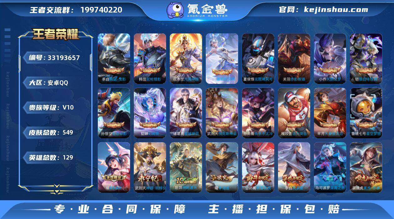 安卓手Q497区549皮16典藏76传说2无双V10 营地ID1858422408永恒钻石II【无双皮肤】:瑶真我赫兹,神器·明辉仪【荣耀典藏】:最初的交响,弑枪猎影,幻阙歌,银白咏叹调,赤影疾锋,九霄神辉,星域神启,活力突击,大秦宣太后,杀手不太冷,无限飓风号,倪克斯神谕,全息碎影,星空梦想,鸣剑·曳影,天鹅之梦【优质限定皮肤】:山海·苍雷引,山海·琳琅生,山海·炽霜斩,天魔缭乱,无双飞将,云中君时之祈愿,瑶时之祈愿,武圣,神威,祈雪灵祝,至尊宝,凤求凰【传说皮肤】:神树通天,鸣野蒿,觅芳踪,灼幽烈阳,妄想实况,默契交锋,记忆之芯,浮生妄,画中仙,燃星之曲,无限倾心,无限倾心,炽翼辉光,永曜之星,齐天大圣,山海·苍雷引,山海·琳琅生,山海·炽霜斩,怒海麟威,诗剑行,神器·狴犴令,时雨天司,绯月行,星穹之声,碎云,枫霜尽,天魔缭乱,前尘镜,音你闪耀,深海之息,无尽星芒,无双飞将,挚爱花嫁,挚爱之约,武陵仙君,启示之音,零号·赤焰,花朝如约,补天,末日机甲,瑶时之祈愿,寅虎·赤拳,寅虎·瑞焰,武圣,异界灵契,太华,遇见胡旋,淬星耀世,乞巧织情,游龙清影,久胜战神,胖达荣荣,猫影幻舞,音你心动,音你心动,时之恋人,炽阳神光,黄金白羊座,李逍遥 ,地狱火,云鹰飞将,飞鸢探春,冠军飞将,绛天战甲,仲夏夜之梦,祈雪灵祝,黄金狮子...