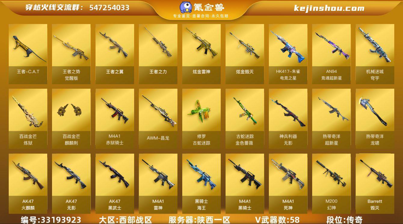 DYCF134【62V 王者之力/翼 王者之势觉醒 炫金雷神/毁灭】【等级】102【区服】陕西一区【英雄角色】3【英雄武器】58【王者级武器】王者之势-觉醒版 王者之力 王者之翼【炫金级武器】炫金雷神 炫金毁灭【英雄级角色】战地猎狐 幻面灵狐 葵-阿尔法武装 团团【英雄级武器】天罚-斗烈龙驹 屠龙-斗烈龙驹 HK417-朱雀-电竞之星 屠龙-电竞之星 M4A1-苍鸣雷神 Barrett-碧霄极光 炼狱-百战金芒 机械迷城-穹宇 M4A1-再燃火线 麒麟刺-百战金芒 黑武士-锦绣游龙 M200-幻神 龙啸-烈火龙威 无影-神兵利器 汤姆逊-烈龙 高爆手雷-竞技荣光 闪光弹-竞技荣光 烟雾弹-竞技荣光 Barrett-极光 汤姆逊-烈龙 QBZ03-金色蔷薇 Barrett-暗月传说 黑骑士-海王 沙鹰-天神 麒麟刺 AK47-黑武士 AK-47-猩红传说 AK47-B-战神 AK-47-猩红传说 AK47-B-战士 AK47-火麒麟 麒麟刺 屠龙 汤姆逊-烈龙 屠龙 屠龙 汤姆逊-烈龙 汤姆逊-烈龙 M4A1-死神 AK47-火麒麟 M4A1-黑骑士 AWM-天龙 沙鹰-修罗 barrett-金色蔷薇 沙鹰-天神 AK47-无影 M4A1-雷神 屠龙 擎天 沙鹰-修罗 Barrett-毁灭 汤姆逊-烈龙 M200-玄龙 斯泰尔 AUG A3-雪夜奇缘 Glock18-雪夜奇缘 手雷-雪夜奇缘 【源级武器】金色蔷薇-古蛇迷踪 修罗-古蛇迷踪 魂·屠龙-...