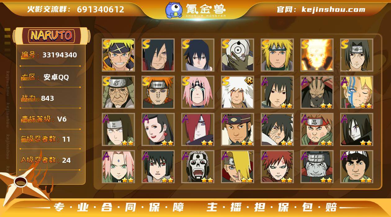DHY709【S忍者11 A忍者24 通灵18】【安卓Q-3255区-142级-V6-843万战力】【S级】宇智波佐助「永恒万花筒」 宇智波鼬「须佐能乎」 漩涡鸣人·宇智波佐助 波风水门 宇智波斑「白面具」 宇智波斑「秽土转生·解」 漩涡鸣人「九喇嘛连结」 佩恩「天道」 春野樱「忍界大战」 猿飞日斩「秽土转生」 自来也「舞之豪杰」【A级】漩涡博人「桃式显现」 千代「近松十人卫」 宇智波佐助「万花筒写轮眼」 大野木「侠隐江湖」 黑土「四代目土影」 我爱罗「疾风传」 迈特凯 春野樱「百豪」 迪达拉 日向宁次「忍界大战」 大蛇丸「晓」 宇智波泉奈 长门「青年」 不缘 旗木卡卡西「幻之真容」 宇智波鼬 飞段「死司凭血」 达鲁伊「五代目雷影」 宇智波带土「暴怒」 秋道丁次「忍界大战」 蝎 干柿鬼鲛 猿飞阿斯玛 迈特凯「青春爆炸」【B级】大和「暗部」 宇智波佐助「新春限定」 犬塚牙「疾风传」 漩涡鸣人「疾风传」 奈良鹿丸「最终章」 佩恩「地狱道」 木叶丸「疾风传」 惠比寿 日向花火「武当宗师」 佩恩「修罗道」 御手洗红豆「新春限定」 萨姆伊「新春限定」 油女志乃「新春限定」 佩恩「饿鬼道」 白「秽土转生」 旗木卡卡西「少年」 鬼灯水月 萨姆伊「忍界大战」 秋道丁次「疾风传」 枫「七尾人...