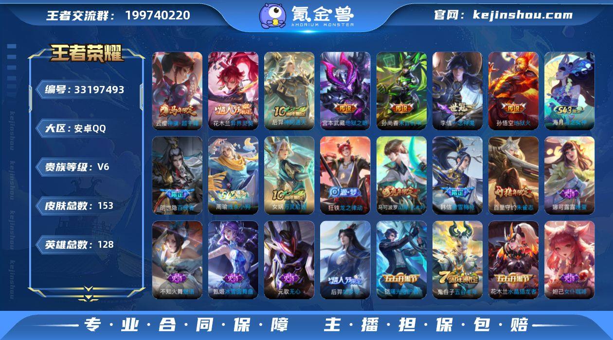 【WZSA1564】贵族等级6/传说皮肤数量7/史诗皮肤数量42/皮肤数量153/英雄数量128/段位至尊星耀/孙权全皮/影全皮/云缨神骥越千峰/花木兰异界灵契/神树通天/一念神魔/末日机甲-孙尚香/地狱之眼/地狱火/阴阳师/皇家上将/蔷薇恋人/幻夜卜梦/无心/山海·玄木吟/魔术师/万华元夜(s22)/沙漠行僧(s26)/海滩派对/醍醐杖(s20)/傲雪梅枪/金庭之子(s27)/如梦令-后羿/云中旅人(s29)/驱傩正仪(s24)/原初探秘者(s21)/五谷丰年/火炮绅士/千军破阵(s25)/朱雀志/混沌棋(s18)/顽趣-梦奇/大漠名商(s28)/擒涛扼浪(s31)/御霄(s14)/探海日志(s32)/海盐诗旅(s30)/女武神/江河有灵/古海寻踪(s33)/蒙恬荣光圣徽/鬼谷子天穹祈灯(S34)/龙武盛年/虚灵犬护/逆浪荇歌/荣光之誓/线条小狗-周瑜/明世隐百晓客/万灵启世/龙之律动/魅语/晚萤/鹰眼统帅/猫狗日记-孙策/节奏热浪/星夜王子/逐浪之夏/曙光守护者/冰冠公主/黄金分割率/暗隐猎兽者/缤纷独角兽/乘风破浪/德古拉伯爵/水晶猎龙者/白龙吟/末日机甲-吕布/幽灵船长/金属风暴/女仆咖啡/暗夜贵公子/水果甜心/鬼剑武藏/冰雪圆舞曲/圣诞恋歌/未来纪元-赵云/影百相守梦/班班快跑/溯影追猎/极光幻客/鹤鸣心笺/径山谋武/罗小黑战记/踏浪烽翎/锦麟游梦/死霸装/命运加冕/星...