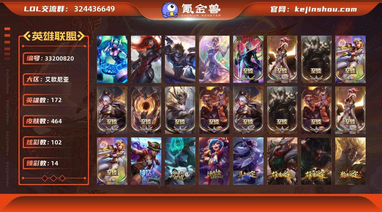 单双铂金段位-172英雄-464皮肤-102炫彩-4终极-17神话-103限定-47传说-114史诗 【珍稀头像】:星界起源头像,星守阿狸头像 【热门头像】:觅心游侠卢锡安头像,春晖神女头像,玉剑传说舞剑仙头像,玉剑传说无影头像,KDA阿卡丽头像 【神话皮肤】:十周年纪念安妮,源代码乐芙兰,十五周年纪念希维尔 【至臻皮肤】:至臻至高天凯尔,至臻蒙面女郎莫甘娜,至臻源计划正义艾瑞莉娅,至臻源计划:正义艾瑞莉娅(2022),至臻电玩女神凯特琳,至臻电玩女神凯特琳(2022),至臻暗星墨菲特,至臻烈焰美人薇恩,至臻烈焰美人薇恩(2022),至臻KDA阿卡丽,至臻KDA阿卡丽(2022),至臻魔女婕拉,至臻腥红之月亚托克斯,至臻腥红之月亚托克斯(2022) 【臻彩皮肤】:春晖神女拉克丝流风回雪,天龙之子卡莎飞龙乘云,张辽文远炫金将军,墨之影武者亚索金墨耀影,玉剑传说舞剑仙轩辕,冠军掠夺者卡兹克凯旋圣装,冠军之刃锐雯2016凯旋圣装,闭月之颜貂蝉炫金莲华,冠军之隐劫凯旋圣装,霸天异形卡兹克掠空魅影,战斗学院卡特琳娜盛典礼服,魔女阿卡丽虚荣,净雪之月莫甘娜冬虹 【年限皮肤】:广寒仙子嫦娥,司马懿仲达,虎痴之拳蔚,南天之怒沃里克,北辰之威内瑟斯,春晖神女拉克丝,金猪烈焰瑟庄...
