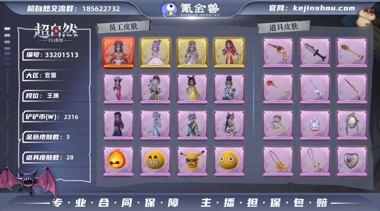 ZR703,红皮:1,金皮:3,紫皮:8,道具皮:28,外观:巫铃儿-镜生遗梦,薇薇安-圣光之谕,小黄-遗失的童话,巫铃儿-镜花辞,爱丽丝-耀眼的你,莉莉-除妖小师妹,阿念-王子与骑士,薇薇安-白光莹,逍遥-泽引山海,巫铃儿-素影瑶光,爱丽丝-丝缕哀歌,小黄-呱呱雨衣,道具:腰包-宝剑八,铲子-圣心之泪,夜视仪-金丝眼镜,转轮手枪-新星时代,喷气背包-乘风溯雪,额外的背包-飞花令,桃木剑-最后的独角兽,铲子-龙鳞,传送按钮-幻宠之门,葫芦-伏妖塔,急救包-蔷薇物语,传送按钮-昆仑镜,音响-鸣沙鼓,专业手电-云端梦想计划,长鞭-小狗蛇点点鞭,桃木剑-凤鸣九天,音响-happy猫,黄牛能量饮料-青玉抱丹,摸金符-花落精绝,摸金符-祝祷词,短管猎枪-星光的裁决,刺刀-小鲨匕首,背饰-云梦之星,背饰-天使的呼唤,背饰-蝶恋花,背饰-毛球夹子,头饰:饺饺者,蒜了八,鱼头怪头套,烈焰红唇头套,大葱明头套,火爆了头套,面具马头套,哈士奇头套,萨卡班甲鱼头套,嘻嘻头套,滑稽头套,呆滞头套,卑微头套,小狗蛇点点头套,炙热烧烤,像素朋克墨镜,后室幸存者头套,挂饰:未竟乐园,小鲨包包,天使消失的年代,钗头凤,动作:新年摇,luvaboy,鹏友摇,心跳摇,小雨摇,舞台中心,姬芽摇,拜年,律动迪斯科,举牌,抬手,旋转舞,员工:小黄,爱丽丝,零,阿念,逍遥,薇...