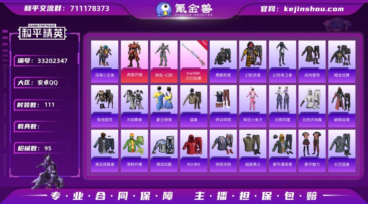 HM6850安卓Q区-1粉装-3特效枪-无二次协助 24941热力值-2王牌印记-87套装-95枪皮【优质套装】: 虎痴许褚【特效枪等级】:Kar98K-巳巳如意(五级- Kar98K-巳巳如意)【优质武器皮肤】: Kar98K-巳巳如意【稀有武器皮肤】: QBZ-纯真浪花 AWM-纯真浪花 汤姆逊-纯真浪花 DBS-乌木金纹 AA12-G-纯真浪花 平底锅-纯真浪花 SCAR-L-海盐豹豹 GROZA-海盐豹豹 Kar98K-巳巳如意 野牛-雏菊兔兔 蝎式手枪-金丰海韵 Mk14-冰河战士 平底锅-雏菊兔兔 M762-雏菊兔兔 Mini14-雏菊兔兔 R1895-雏菊兔兔 UZI-冰河战士 M16A4-冰河战士 20-H-乌木金纹 蜜獾-乌木金纹 M416-蓝色火焰 AKM-江南烟雨 SCAR-L-夜灯 SCAR-L-炫彩节奏 GROZA-影袭 AUG-天降萌叽 QBZ-彩虹符号 AC-VAL-天降萌叽 蜜獾-天降萌叽 M24-影袭 AWM-天降萌叽 SKS-金玉无双 SKS-炫彩节奏 VSS-星之彼岸 Mini14-耀粉歌者 UZI-影袭 UZI-天降萌叽 UZI-啾咪啾咪 UMP45-夜灯 Vector-暗夜玫瑰 汤姆逊-天降萌叽 MP5K-乌木金纹 P90-玩趣呆呆 S12K-夜灯 M249-破晓战魂 DP-28-彩虹符号 MG3-乌木金纹 平底锅-光之冒险 战术弩-江南烟雨 汤姆逊-樱桃泡泡 野牛-燕燕于飞 M200-乌木金纹 SPAS-12-燕燕于飞 蝎式手枪-燕燕于飞 大砍刀-鬼刀 S686-巳巳如意 Vector...