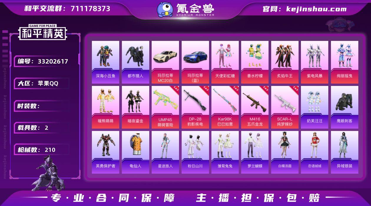 WJ888可二次【2载具-7粉装-6特效枪 都市猎人,小丑鱼,深海小丑鱼】 苹果手Q-2载具-7粉装-6特效枪-128套装-210枪皮-8王牌印记-不朽星钻Ⅴ-63714热力值【2载具】玛莎拉蒂MC20(星石白),玛莎拉蒂Ghibli(蓝)【7粉装】绚丽摇曳,炙焰牛王,紫电风暴,香水柠檬,暖熊萌萌,天使彩虹糖,暗夜鎏金【6特效枪】Mk14-福马献瑞[5级],Kar98K-巳巳如意[5级],SCAR-L-纯梦嫁纱[7级],DP-28-豹影疾电[5级],UMP45-萌骑冒险[5级],M416-五爪金龙[7级]【5稀有】都市猎人,小丑鱼,深海小丑鱼,AKM-奇异狩猎者,汤姆逊-奇异狩猎者【8飞行器】马上有福飞行器,狂鲨锋刃飞行器,梦幻火箭飞行器,登顶巅峰飞行器,星夜魔法师飞行翼,顶峰精英尾迹,炫彩糖果飞行器,异域银装飞行器【2头盔】梦幻火箭头盔,百万伏特头盔【1背包】花间之火背包【320其它衣服和枪皮】画境星梦,SS36特训,玉兔迎春,长空猛禽,甜心亚梦,角色-海琴烟,熠彩粉晶,漫步者,魅力单车,幻彩翩翩,炫蓝之夏,耀眼新星,角色-绛羽幽主,福马献瑞,沁蓝冰爽,音速流光,白色伏地魔,龙魂突击队,蓝色运动,炫彩糖果,粉团憨憨,角色-军刀雅典娜,和煦暖阳,妙红点点,狙击之神,暖风夏荷,幻世战舞者,电音精灵,懵萌河马,田园牧歌,湖蓝色名流,飞行日记,燕燕于飞,黄色名流,角色-绯色魅...