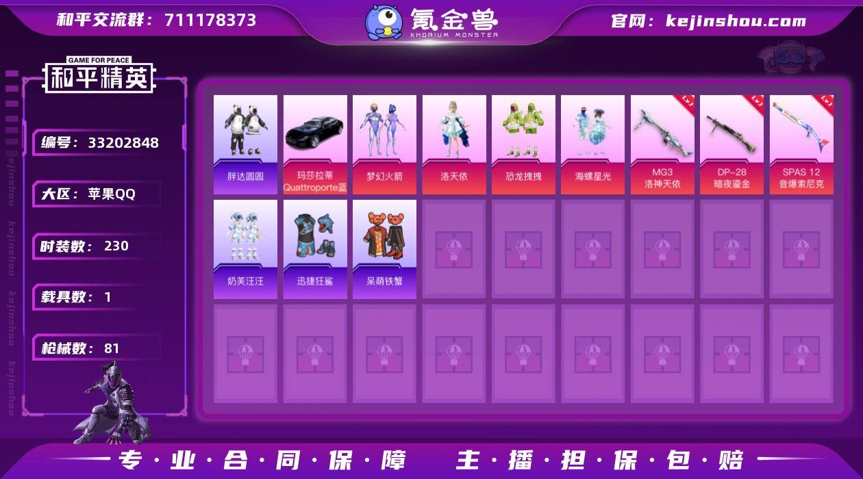 4粉装 4特效枪 1载具 5印记 可二次 可修改实名
