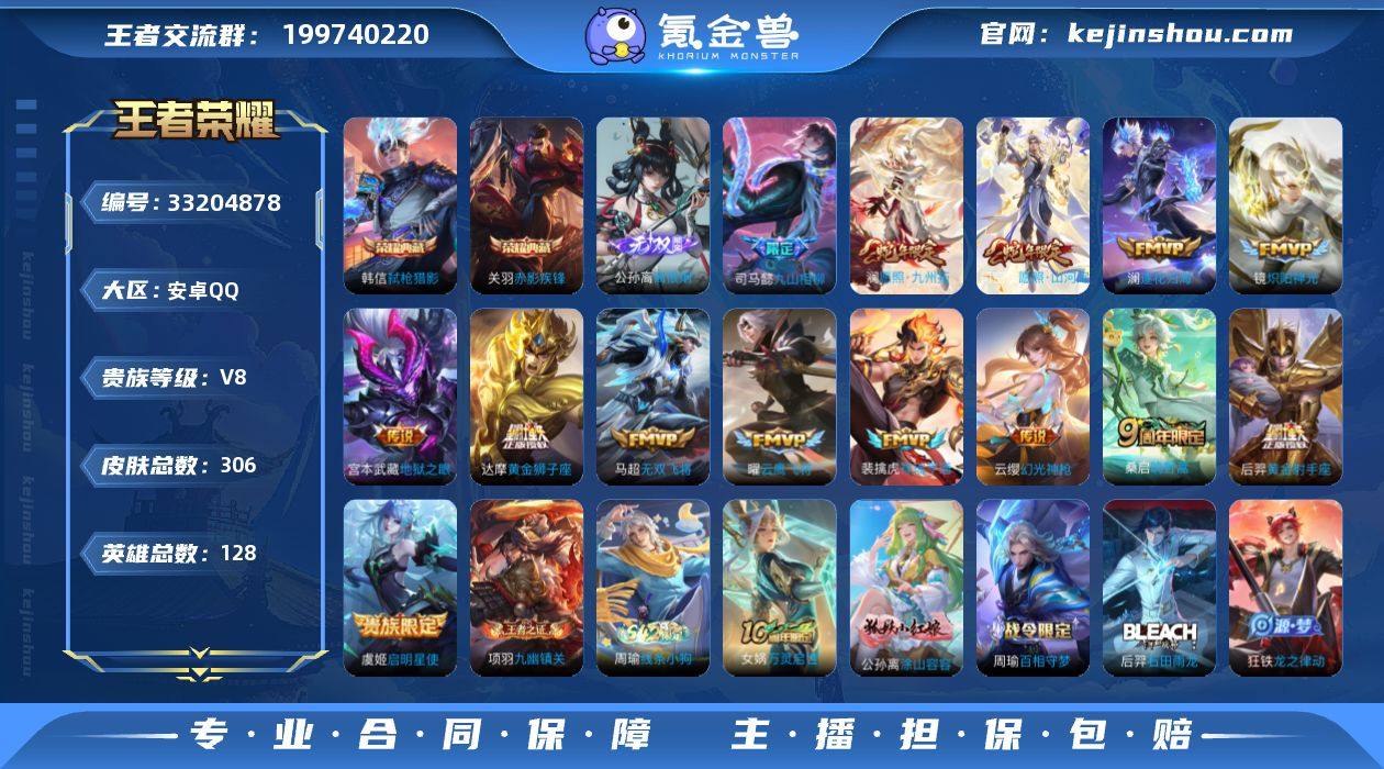 TD264706可二次安卓Q-V8-尊贵铂金II段位-128英雄-306皮肤-2典藏皮肤-1无双-14传说-99史诗 【英雄全皮】:司马懿全皮,孙权全皮,司空震全皮,空空儿全皮 【荣耀典藏】:关羽赤影疾锋,韩信弑枪猎影 【无双皮肤】:公孙离离恨烟 【传说皮肤】:司马懿九山相柳,司空震愿照山河定,澜愿照九州拓,云缨幻光神枪,裴擒虎祥瑞亨通,桑启鸣野蒿,澜逐花归海,马超无双飞将,镜炽阳神光,虞姬启明星使,曜云鹰飞将,达摩黄金狮子座,后羿黄金射手座,宫本武藏地狱之眼 【限定皮肤】:公孙离离恨烟,蒙犽顽岩魄,蔡文姬夏日便利店,虞姬夏日便利店,姜子牙天穹之誓,李白谪仙醉月,狄仁杰阴阳师,赵云皇家上将,赵云龙胆,墨子神迹守卫,嬴政优雅恋人,庄周高山流水,高渐离玩趣恶龙,钟无艳王者之锤,钟无艳超时空战士,周瑜赤莲之焰,元歌无心,夏侯惇朔风刀,甄姬落雪兰心,马可波罗暗影游猎,狄仁杰魔术师,狄仁杰万华元夜,达摩沙漠行僧,项羽海滩派对,老夫子醍醐杖,老夫子航海奇遇记,关羽冰锋战神,程咬金演武夺筹,王昭君午后时光,兰陵王驯魔猎人,兰陵王金庭之子,孙悟空至尊宝,李元芳云中旅人,虞姬启明星使,钟馗驱傩正仪,哪吒逐梦之翼,雅典娜单词大作战,雅典娜黎明...