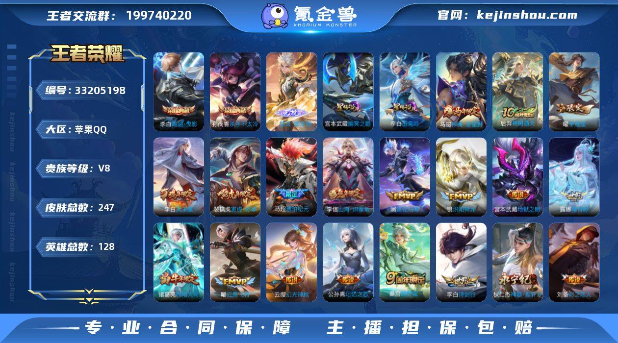 CHC51240,,,苹果Q-V8-永恒钻石IV段位-128英雄-247皮肤-2典藏皮肤-1无双-23传说-74史诗 【英雄全皮】:孙权全皮 【荣耀典藏】:孙尚香杀手不太冷,李白鸣剑曳影 【无双皮肤】:曜器灵螭龙剑 【传说皮肤】:马超神骥逐星野,后羿神树通天,云缨幻光神枪,桑启鸣野蒿,马超琥珀纪元,澜逐花归海,露娜霜月吟,公孙离记忆之芯,伽罗炽翼辉光,李信山海炽霜斩,李白诗剑行,狄仁杰神器狴犴令,裴擒虎寅虎赤拳,赵云淬星耀世,曜李逍遥 ,诸葛亮时雨天司,铠绛天战甲,镜炽阳神光,虞姬启明星使,曜云鹰飞将,刘备时之恋人,李白凤求凰,宫本武藏地狱之眼 【限定皮肤】:白起狰,暃埋骨钱,虞姬夏日便利店,姜子牙天穹之誓,狄仁杰阴阳师,虞姬凯尔特女王,赵云皇家上将,赵云百木心枪,钟无艳超时空战士,扁鹊奇幻香踪,白起夜都怪侠,芈月幻夜卜梦,吕布御风骁将,元歌无心,夏侯惇朔风刀,甄姬落雪兰心,马可波罗暗影游猎,狄仁杰魔术师,狄仁杰神器狴犴令,达摩沙漠行僧,项羽海滩派对,关羽冰锋战神,程咬金演武夺筹,韩信傲雪梅枪,王昭君午后时光,兰陵王金庭之子,孙悟空美猴王,孙悟空至尊宝,李元芳云中旅人,虞姬启明星使,钟馗驱傩正仪,杨戬潮玩骑兵,干将莫邪胡桃...