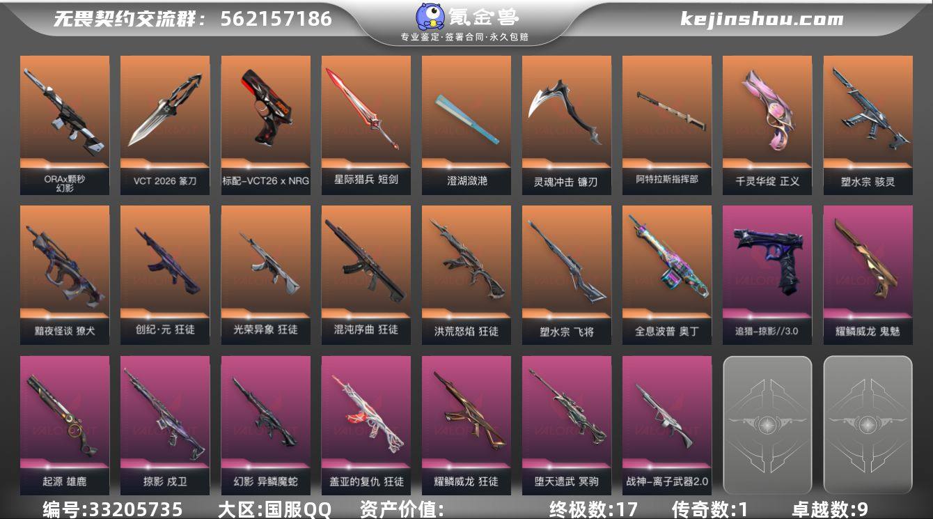 【953751】【套装】:VCT 2026 赛季套装,回火礼包// V25套装 【英雄】:幻棱,炼狱,维斯,暮蝶,钛狐,壹决,铁臂,捷风,雷兹,幽影,不死鸟,贤者,猎枭,蝰蛇,零,芮娜,奇乐,尚勃勒,霓虹,斯凯,夜露,星礈,K/O,海神,盖可,黑梦,钢锁 【近战武器】:近战武器-碎心裂刃,近战武器-VCT 2026 篆刀,近战武器-澄湖潋滟,近战武器-灵魂冲击 镰刃,近战武器-阿特拉斯指挥部 甩棍,近战武器-星际猎兵 短剑 【狂徒】:狂徒-洪荒怒焰,狂徒-混沌序曲,狂徒-创·纪元,狂徒-光荣异象,狂徒-盖亚的复仇,狂徒-耀鳞威龙 【幻影】:幻影-ORA x 颗秒,幻影-异鳞魔蛇 【戍卫】:戍卫-掠影 【獠犬】:獠犬-黯夜怪谈 【冥驹】:冥驹-堕天遗武 【飞将】:飞将-塑水宗 【战神】:战神-离子武器//2.0 【奥丁】:奥丁-全息波普 【雄鹿】:雄鹿-起源 【骇灵】:骇灵-塑水宗,骇灵-无限竞技 【追猎】:追猎-掠影//3.0 【VCT手枪】:标配-VCT26 x NRG 【正义】:正义-千灵华绽 【鬼魅】:鬼魅-耀鳞威龙,鬼魅-缄默者,鬼魅-灵魂消声者 【卡面】:南瓜盛典 卡面,Clutch 卡面,无畏契约:蝰蛇 卡面,无畏契约GO!第一卷:芮娜 卡面,无畏契约GO!第一卷:零 卡面,代号红色 卡面,新兵报到...