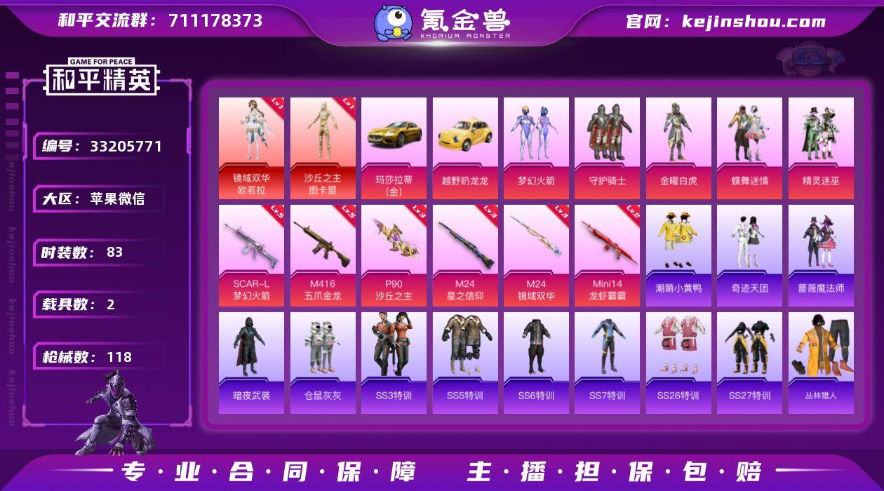 【953756】图卡盟!欧若拉!新101!苹果 V社交限制!!游戏正常! 微信-2神装-5粉装-6特效枪-2载具-5粉色飞行器-48538热力值-1王牌印记-83套装-118枪皮 【红色神装等级】:镜域双华-欧若拉(一级),沙丘之主-图卡盟(一级) 【红色角色神装】:镜域双华-欧若拉,沙丘之主-图卡盟 【热门品类】:粉装-梦幻火箭,套装-SS1特训,套装-潮萌小黄鸭 【粉色套装】:粉装-守护骑士,粉装-金曜白虎,粉装-蝶舞迷情,粉装-精灵迷巫,粉装-梦幻火箭 【粉色枪皮等级】:SCAR-L-梦幻火箭(五级),M416-五爪金龙(五级),P90-沙丘之主(三级),M24-星之信仰(三级),M24-镜域双华(三级),Mini14-龙虾霸霸(二级) 【粉色载具】:玛莎拉蒂Ghibli(金),越野奶龙龙 【粉色枪皮】:SCAR-L-梦幻火箭,M416-五爪金龙,P90-沙丘之主,M24-星之信仰,M24-镜域双华,Mini14-龙虾霸霸 【粉色飞行器】:精灵迷巫飞行器,梦幻火箭飞行器,沙丘之主天马,镜域双华-灵镜之阶 【粉色降落伞】:银河战甲降落伞,至尊龙雀降落伞,雪国幻梦降落伞,春暖花开降落伞,精灵迷巫降落伞,梦幻火箭降落伞,华贵君王降落伞,星之信仰降落伞,闲梦青缨降落伞,圣堂之誓降落伞,沙丘之主降落伞,小叽联名款降落伞,猪猪侠降落伞...
