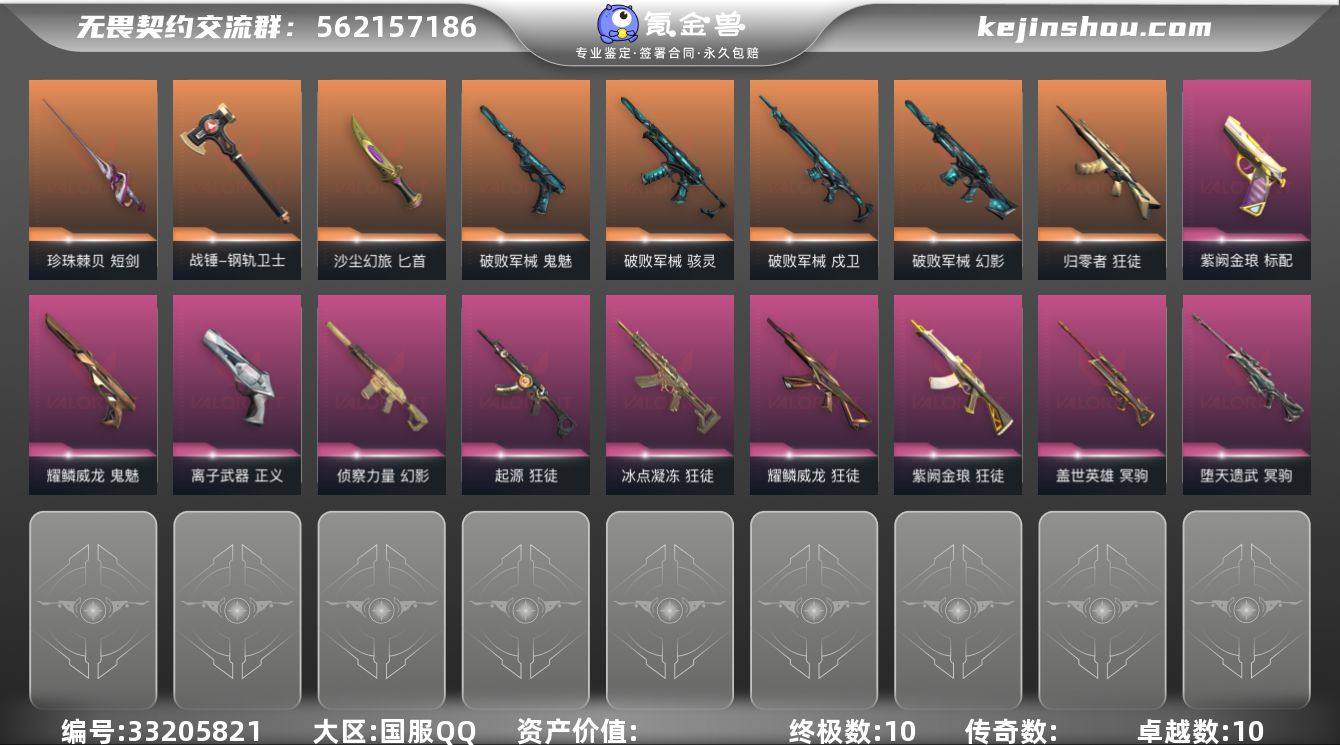 【kywwqy61】【套装】:破败军械套装,耀鳞威龙套装 【英雄】:幻棱,炼狱,维斯,暮蝶,钛狐,壹决,铁臂,捷风,雷兹,幽影,不死鸟,贤者,猎枭,蝰蛇,零,芮娜,奇乐,尚勃勒,霓虹,斯凯,夜露,星礈,K/O,海神,盖可,黑梦,钢锁 【近战武器】:近战武器-威龙之刃,近战武器-珍珠棘贝 短剑,近战武器-钢轨卫士 战锤,近战武器-破败王者之残刃,近战武器-沙尘幻旅 匕首 【狂徒】:狂徒-归零者,狂徒-冰点凝冻,狂徒-起源,狂徒-耀鳞威龙,狂徒-紫阙金琅,狂徒-钢轨卫士,狂徒-沙尘幻旅 【幻影】:幻影-破败军械,幻影-侦察力量,幻影-珍珠棘贝,幻影-战术小伙伴 【戍卫】:戍卫-破败军械,戍卫-钢轨卫士,戍卫-珍珠棘贝,戍卫-萌彩剪影 【獠犬】:獠犬-复古浪潮,獠犬-胡桃狂想,獠犬-战术小伙伴 【冥驹】:冥驹-堕天遗武,冥驹-盖世英雄,冥驹-复古浪潮,冥驹-胡桃狂想 【飞将】:飞将-沙尘幻旅,飞将-光导纤维 【莽侠】:莽侠-深海水族 【战神】:战神-萌彩剪影,战神-深海水族 【奥丁】:奥丁-战术小伙伴 【判官】:判官-萌彩剪影 【雄鹿】:雄鹿-复古浪潮 【骇灵】:骇灵-破败军械,骇灵-沙尘幻旅,骇灵-珍珠棘贝,骇灵-光导纤维 【蜂刺】:蜂刺-胡桃狂想,蜂刺-深...