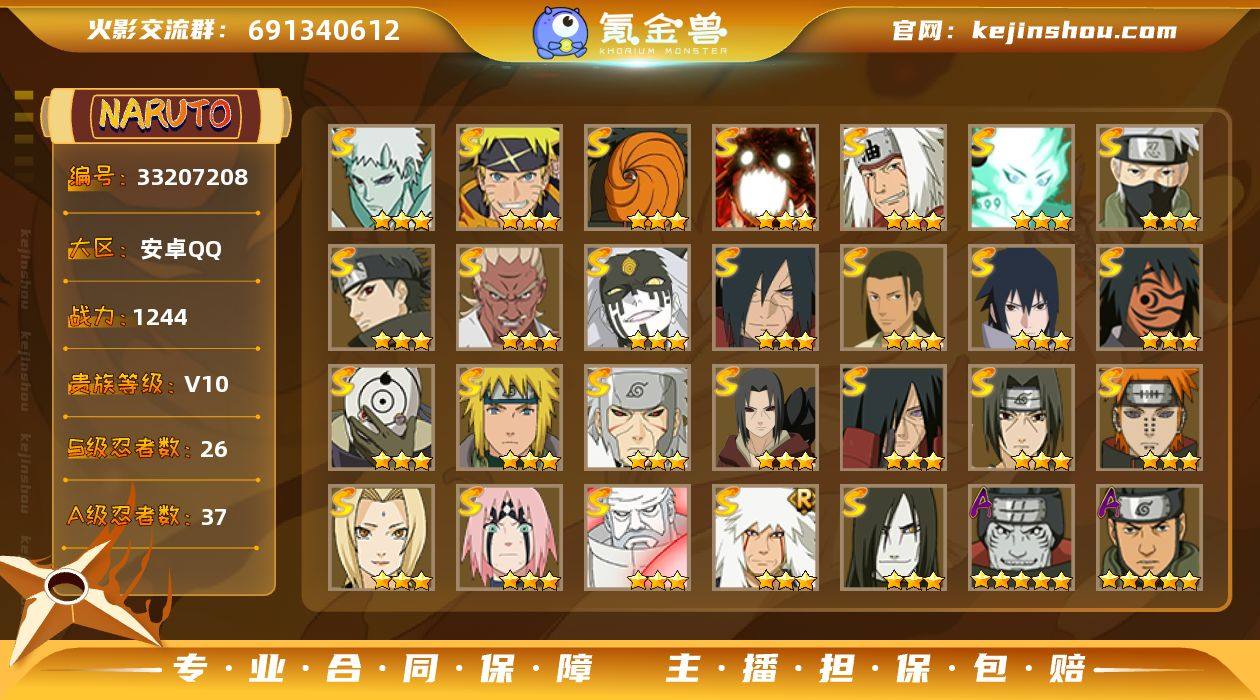 【HYC1806】VIP等级V10/战力1244W/S忍数量26/A忍数量37/三星S-宇智波斑「秽土转生」/三星S-纲手/三星S-宇智波带土「十尾人柱力」/二星A-飞段「死司凭血」/五星A-猿飞阿斯玛/三星S-旗木卡卡西「须佐能乎」/二星A-照美冥「五代目水影」/五星A-迈特凯/三星S-千手扉间「秽土转生」/三星S-千手柱间·木叶创立/三星S-大筒木桃式/二星A-长十郎「六代目水影」/二星A-蝎「绯流琥」/三星S-漩涡鸣人 「暴怒·第六尾」/三星S-宇智波斑「白面具」/三星S-自来也 「传说中的三忍」/二星A-黑土「四代目土影」/二星A-迪达拉「秽土转生」/二星A-神农 「羁绊」/三星S-春野樱 「忍界大战」/二星A-宇智波佐助「万花筒写轮眼」/二星A-志村团藏/二星A-迪达拉/二星A-小南/二星A-漩涡鸣人「九尾查克拉」/二星A-日向宁次·忍界大战/三星S-宇智波佐助「永恒万花筒」/三星S-大筒木金式「博人传」/三星S-宇智波鼬「秽土转生」/二星A-长门「青年」/二星A-宇智波佐助「疾风传咒印」/三星A-飞段/三星S-佩恩「天道」/三星S-漩涡鸣人·宇智波佐助/四星A-蝎/二星A-角都「地怨虞」/三星S-波风水门/三星S-大筒木舍人 「最终章」/二星A-秋道丁次「忍界大战」/二星A-角都「秽土转生」/二星A-漩涡博人「桃式显现」/三星A-我...