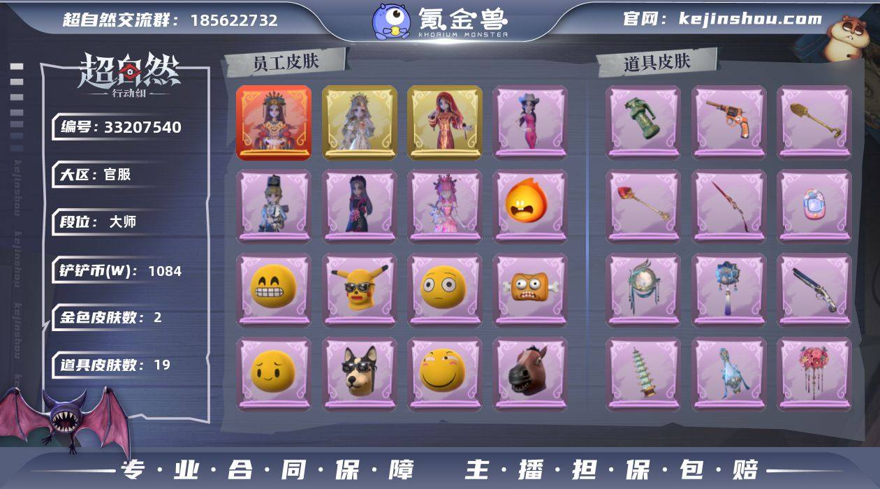 ZR846,红皮:1,金皮:2,紫皮:4,道具皮:19,外观:巫铃儿-镜生遗梦,薇薇安-圣光之谕,巫铃儿-镜花辞,爱丽丝-耀眼的你,阿念-王子与骑士,莉莉-情公主,爱丽丝-丝缕哀歌,道具:铲子-龙鳞,荧光棒-桃心,额外的背包-飞花令,桃木剑-凤鸣九天,夜视仪-金丝眼镜,音响-happy猫,传送按钮-幻宠之门,急救包-蔷薇物语,腰包-月下莲台,传送按钮-昆仑镜,短管猎枪-星光的裁决,铲子-圣心之泪,转轮手枪-新星时代,闪光弹-金戈玄铜,黄牛能量饮料-青玉抱丹,葫芦-伏妖塔,背饰-云梦之星,背饰-天使的呼唤,背饰-蝶恋花,美妆:天使之泪,头饰:鱼头怪头套,烈焰红唇头套,火爆了头套,面具马头套,哈士奇头套,萨卡班甲鱼头套,嘻嘻头套,滑稽头套,呆滞头套,卑微头套,小狗蛇点点头套,炙热烧烤,像素朋克墨镜,后室幸存者头套,挂饰:桂冠聆诗,未竟乐园,钗头凤,晚安小熊,拂云仙,动作:抖肩舞,打车摇,新年摇,不孬摇,鹏友摇,心跳摇,小雨摇,舞台中心,律动迪斯科,举牌,抬手,员工:小黄,爱丽丝,零,阿念,薇薇安,巫铃儿,莉莉,兰,小满,临云,白色皮肤:小黄-青苔绿,小黄-孔雀绿,小黄-宝石红,小黄-牛仔蓝,小黄-素雅白,小黄-后室幸存者,赛季魔盒:普通魔盒,累充:17940金砖,段位:大师,铲铲币:1084w