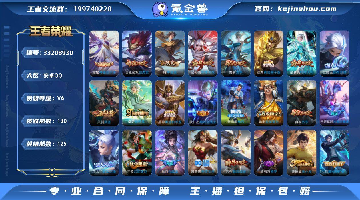 【953809】V6 1典藏 11传说 125英雄 130皮肤 可修改实名 男号 【稀有英雄】大司命,韩信(韩跳跳),夏洛特(夏师傅),艾琳,橘右京(橘子),娜可露露(鸟人),不知火舞,赵云,金蝉(唐僧),戈娅 【荣耀水晶】神鉴启示录 【传说皮】李逍遥,黄金狮子座,黄金射手座,超时空战士-狄仁杰 【珍宝阁皮】万物之道 【赛季/战令皮】剑破天穹(s35),重明(s11),穷奇(s12),御狮(s13),御霄(s14),御旌(s15),御銮(s16),朔风刀(s17),混沌棋(s18),疑决卦(s19),醍醐杖(s20),原初探秘者(s21),万华元夜(s22),演武夺筹(s23),驱傩正仪(s24),朔望之晖,蓝屏警告,单词大作战,狂想玩偶喵,潮玩骑士王,云间偶戏,沙漠行僧(s26) 【史诗皮】特工魅影,千年之狐,修罗,水果甜心,天才门将,星夜王子,心灵骇客,功夫厨神,德古拉伯爵,纤云弄巧,曙光守护者,圣诞恋歌,鹰眼统帅,魅力维加斯 【限定皮】鸣野蒿,白虎志(电光耗子),太华(伽罗年限),梅西,白晶晶,时雨天司(水龙头),武圣,梁祝,御风骁将(吕布年限),逐梦之星,岱宗(典韦年限),奔雷神使(牛魔年限),祈雪灵祝(雪兔子),李小龙,默契交锋-兰陵王,默契交锋-花木兰,冰霜恋舞曲,云端筑梦师,神奇女侠 【普通皮】街头霸王,完美运算,万事如意,五福同心,龙腾万里,花好人间,归虚梦演-孙膑,海滩派对...