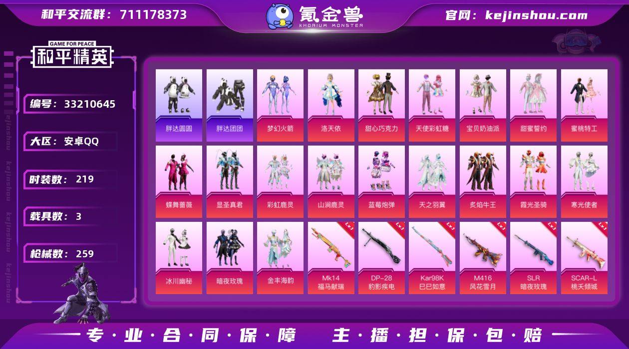 可二次【红眼罩糯粉咩咩19粉装8特效枪3载具胖达圆圆 秒换绑不用等】 安卓Q区-95253热力值-219套装-259枪皮 【3载具】 路特斯EVIJA(星际黄) 玛莎拉蒂Quattroporte(夜幕蓝) 兰博基尼URUS(明艳黄)【5稀有】 胖达圆圆卤蛋头 糯粉咩咩 红眼罩 8号机粉螳螂 六号树人【19粉装】 梦幻火箭 宝贝奶油派 天使彩虹糖 甜心巧克力 洛天依 蜜桃特工 甜蜜誓约 暗夜玫瑰 寒光使者 蓝莓炮弹 彩虹鹿灵 山涧鹿灵 霞光圣骑 炙焰牛王 蝶舞蔷薇 显圣真君 天之羽翼 冰川幽秘 金丰海韵【8特效枪】 M416-风花雪月(7级) Mk14-福马献瑞(5级) SCAR-L-桃夭倾城(7级) AWM-天使羽翼(7级) SLR-暗夜玫瑰(7级) AKM-绿萝繁花(5级) Kar98K-巳巳如意(5级) DP-28-豹影疾电(5级)【231热门】 胖达圆圆 胖达团团 暗夜契约(假黑丝) 暗影哥特(红眼罩) 浪漫天命 小丑鱼 醒狮腾龙 团圆交子 瑞龙福将 纯白誓言 狂沙舞者 GROZA-林间仙鹿 SS27特训 SS26特训 SS25特训 SS24特训 SS23特训 SS22特训 Mini14-梦幻火箭 Kar98K-王子的夏天 Kar98K-电玩视界 AKM-缤纷海域 SCAR-L-玉兔迎春 GROZA-田园牧歌 M762-天降萌叽 M762-彩虹符号 Mk47-乌木金纹 SKS-糯团青竹 Mini14-旋转彩虹 UZI-娇憨猪猪 UMP45-蓝色火焰 M249-彩虹符号 MG3-幻...