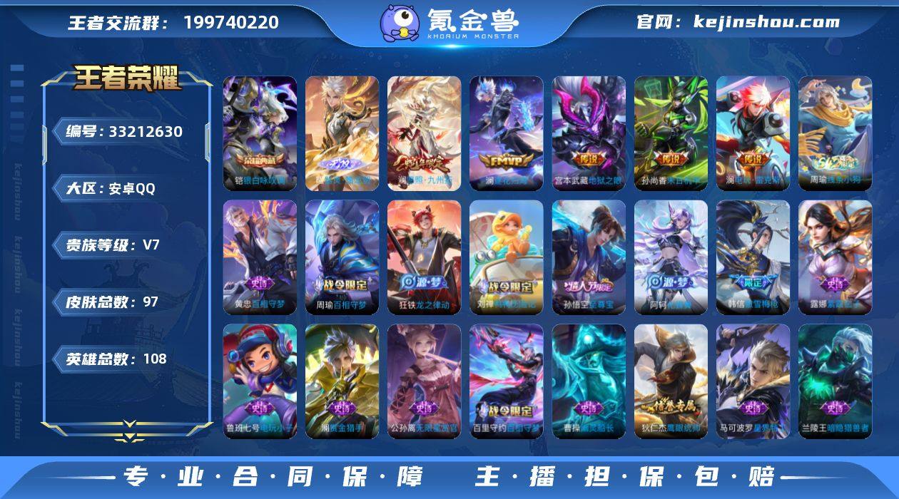 【YX1700】【银白咏叹调/器灵螭龙剑/至尊宝/傲雪梅枪】V7-97皮肤1典藏1无双5传说/愿照九州拓/逐花归海/电玩雷克斯/末日机甲/地狱之眼【限定皮肤】:狄仁杰阴阳师,赵云皇家上将,狄仁杰魔术师,项羽海滩派对,韩信傲雪梅枪,兰陵王金庭之子,孙悟空至尊宝,蒙犽狂想玩偶喵【年限皮肤】:澜愿照九州拓【赛季限定】:兰陵王金庭之子,东皇太一噬灭天穹,太乙真人谧流熔炉,钟馗虚灵犬护,甄姬逆浪荇歌【战令限定】:蒙犽狂想玩偶喵,百里守约百相守梦,老夫子百相守梦,孙膑茶境仙,马超访茗客,刘禅鸭鸭历险记,沈梦溪鸭鸭历险记,周瑜百相守梦,孙策百相守梦,周瑜线条小狗【史诗皮肤】:周瑜线条小狗,黄忠百相守梦,周瑜百相守梦,狂铁龙之律动,刘禅鸭鸭历险记,阿轲化蝶舞,孙膑茶境仙,百里守约百相守梦,马可波罗星界特工,澜赏金猎手,韩信傲雪梅枪,蒙犽狂想玩偶喵,公孙离无限星赏官,狄仁杰鹰眼统帅,伽罗箭羽风息,雅典娜冰冠公主,兰陵王暗隐猎兽者,孙悟空至尊宝,曹操幽灵船长,宫本武藏鬼剑武藏,廉颇地狱岩魂,狄仁杰魔术师,赵云皇家上将,露娜紫霞仙子,鲁班七号电玩小子【其他皮肤】:影百相守梦,哪吒罗小黑战记,鬼谷子克喵,莱西奥踏浪烽翎,庄周锦麟游...