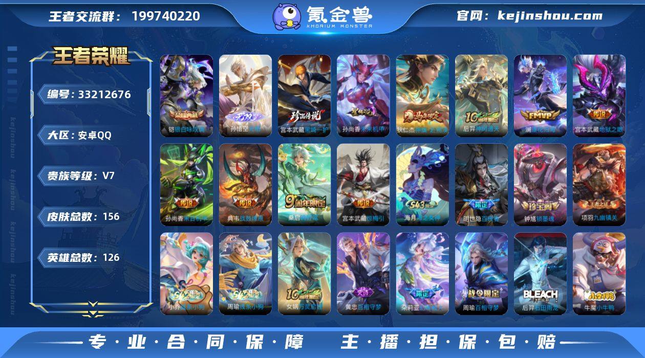 【WZYH1134】贵族等级7/荣耀典藏数量1/传说皮肤数量8/史诗皮肤数量46/皮肤数量156/英雄数量126/段位永恒钻石/宫本武藏全皮/孙权全皮/空空儿全皮/银白咏叹调/无相/未来机甲/黑崎一护/狄仁杰神骥赴朔漠/神树通天/鸣野蒿/典韦战鼓燎原/澜逐花归海/惊梅引/末日机甲-孙尚香/地狱之眼/天穹之誓(s36)/阴阳师/皇家上将/玩趣恶龙/魔术师/万华元夜(s22)/海滩派对/醍醐杖(s20)/演武夺筹(s23)/至尊宝/大圣娶亲/驱傩正仪(s24)/繁星吟游/原初探秘者(s21)/混沌棋(s18)/大漠名商(s28)/疑决卦(s19)/李小龙/山海·碧波行/探海日志(s32)/海盐诗旅(s30)/古海寻踪(s33)/鬼谷子天穹祈灯(S34)/琥珀纪元伽罗/龙武盛年/噬灭天穹(s37)/谧流熔炉/虚灵犬护/逆浪荇歌/荣光之誓/星界战将/九幽镇关/百相守梦-周瑜/百相守梦-孙策/线条小狗-周瑜/线条小狗-小乔/钟馗锁墨魂/明世隐百晓客/万灵启世/幻珠鲛人/百相守梦-黄忠/石田雨龙/小牛鸭/灵蛊蚀心/龙之律动/完美假期/千筹问战/赏金猎手/乐园奇幻夜/鹰眼统帅/节奏热浪/曙光守护者/特工魅影/冰冠公主/黄金分割率/暗隐猎兽者/德古拉伯爵/水晶猎龙者/末日机甲-吕布/幽灵船长/女仆咖啡/魅力维加斯/暗夜贵公子/水果甜心/鬼剑武藏/地狱岩魂/偶像歌手/圣诞恋歌/未来纪元-...