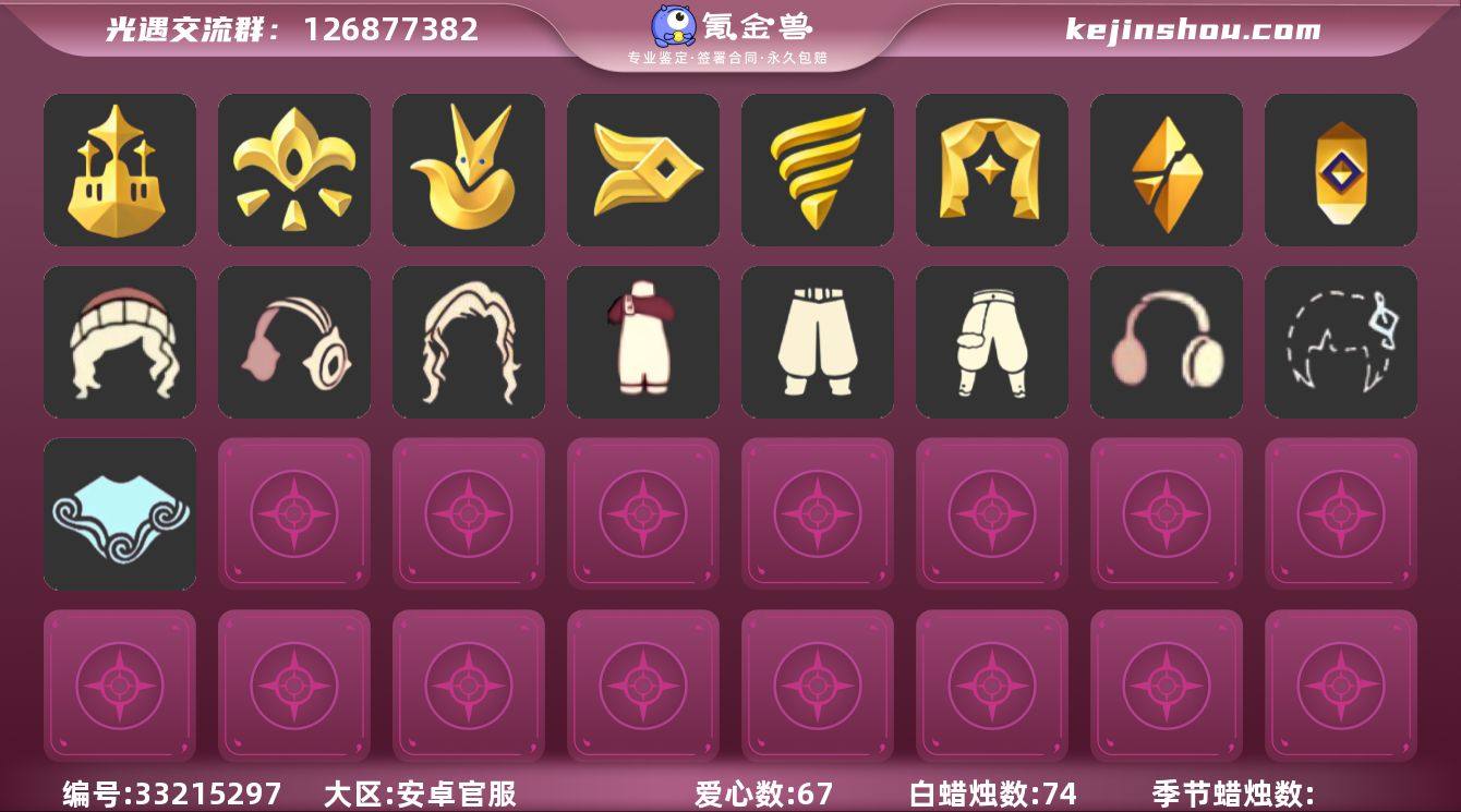 安卓官服十二季负0白枭巫师蝙蝠武士裤【JLGY9937】 常驻:晨岛,云野,雨林,霞谷,暮土,禁阁 季节:风行季,梦想季,潜海季,表演季,小王子季,集结季,破晓季,欧若拉,追忆季,九色鹿,夜行有卡,圣岛有卡 礼包:瑞气服饰,向日葵连衣裙,星月头冠,神鹿祝福礼包,彩虹耳机,圣诞鹿角,夏日有友礼包,彩虹帽,巫师帽,玉兔发饰,四叶草头饰,蓝色音乐会,创始人斗篷,小王子围巾,蝙蝠斗,暖冬瑞雪,白雪斗篷,绊爱礼包,大橘大利,南瓜头,福娃礼包 热门物品:海洋斗,武士裤,虚荣,正太头,猫猫头,背带裤,搓澡巾,花环长发,红耳机,箬笠,平顶帽,雨伞,高音钢琴,白金斗篷,黑金斗篷,红金斗篷,黄鼠狼面具,疯帽匠发型,女巫发型,失孤发型 资源:74/67/30 身高-0.24-11.75 当前0.75 -具体资源以衣柜为准-