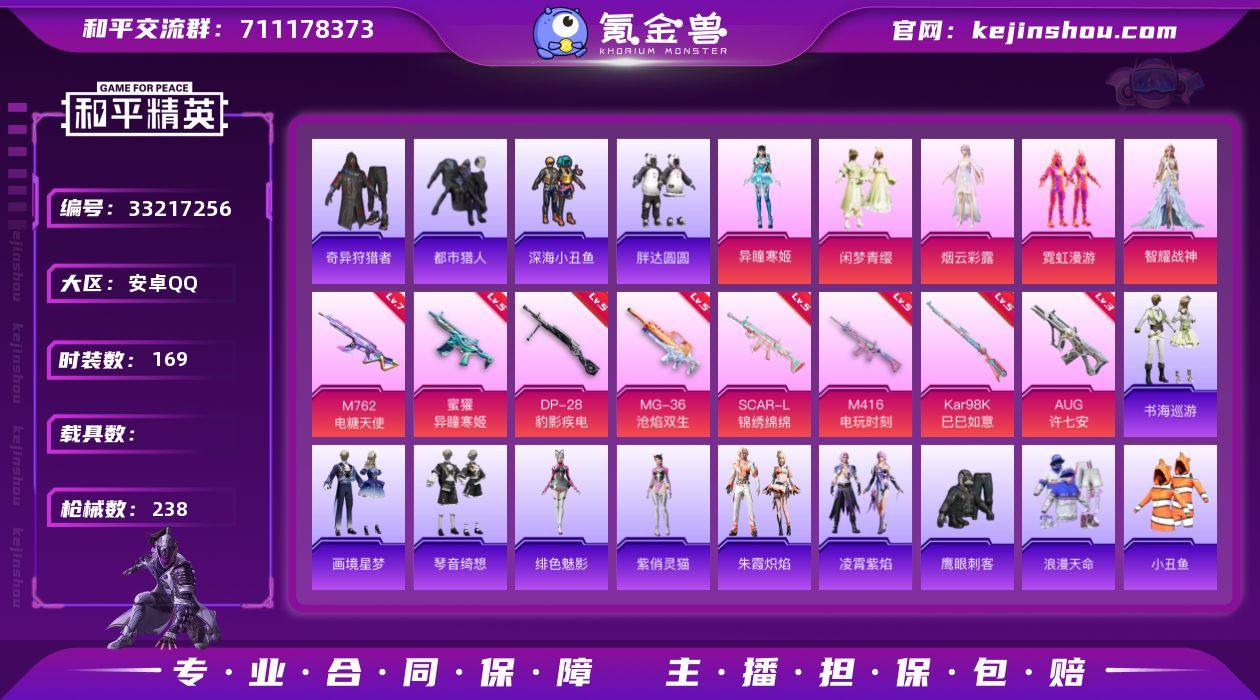 安卓【小号 套装-浪漫天命,套装-都市猎人,套装-胖达圆圆,角色-8号机,角色-Mark.06,M416-电玩时刻(五级),AUG-许七安(三级),M762-电糖天使(七级)】 手Q-5粉装-11特效枪-0载具-4粉色飞行器-70865热力值-11王牌印记-169套装-238枪皮 【热门品类】:套装-浪漫天命,套装-都市猎人,套装-深海小丑鱼,套装-小丑鱼,套装-奇异狩猎者,套装-胖达圆圆,套装-龟仙人,角色-8号机,角色-Mark.06,熔岩游骑兵连帽夹克 【粉色套装】:粉装-闲梦青缨,角色-烟云彩露,粉装-霓虹漫游,角色-智耀战神,角色-异瞳寒姬 【粉色枪皮等级】:SCAR-L-锦绣绵绵(五级),M416-电玩时刻(五级),AUG-许七安(三级),M762-电糖天使(七级),蜜獾-异瞳寒姬(五级),UMP45-萌骑冒险(五级),AKS-74U-森灵之息(五级),Kar98K-巳巳如意(五级),Mk14-福马献瑞(三级),DP-28-豹影疾电(五级),MG-36-沧焰双生(五级) 【粉色枪皮】:SCAR-L-锦绣绵绵,M416-电玩时刻,AUG-许七安,M762-电糖天使,蜜獾-异瞳寒姬,UMP45-萌骑冒险,AKS-74U-森灵之息,Kar98K-巳巳如意,Mk14-福马献瑞,DP-28-豹影疾电,MG-36-沧焰双生 【粉色飞行器】:炫彩糖果飞行器,夜幕颂歌飞行器,脆鲨七海飞行器 【粉色降落伞】:幻影战神降...