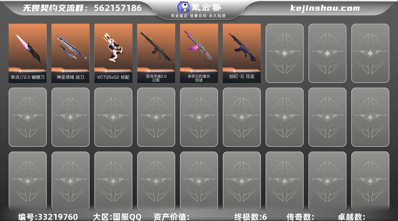 【953922】【英雄】:幻棱,炼狱,维斯,暮蝶,钛狐,壹决,铁臂,捷风,雷兹,幽影,不死鸟,贤者,猎枭,蝰蛇,零,芮娜,奇乐,尚勃勒,霓虹,斯凯,夜露,星礈,K/O,海神,盖可,黑梦,钢锁 【近战武器】:近战武器-奇点//2.0 蝴蝶刀,近战武器-神圣领域 战刀 【狂徒】:狂徒-创·纪元,狂徒-多弥尔的复仇 【幻影】:幻影-混沌序曲//2.0,幻影-神圣领域 【戍卫】:戍卫-月球哨兵 【獠犬】:獠犬-神圣领域 【冥驹】:冥驹-星云暗涌 【莽侠】:莽侠-月球哨兵 【战神】:战神-神圣领域 【雄鹿】:雄鹿-月球哨兵 【骇灵】:骇灵-星云暗涌 【蜂刺】:蜂刺-星云暗涌 【VCT手枪】:标配-VCT25 x G2 【正义】:正义-超限闪存,正义-纳米打击,正义-月球哨兵 【鬼魅】:鬼魅-星云暗涌 【狂怒】:狂怒-神圣领域 【卡面】:终章:激斗汉堡 卡面,进入射程 卡面,《双城之战》拥抱 卡面,精灵大战 卡面,欢迎来到底城 卡面,南瓜盛典 卡面,修车达人 卡面,正义的化身 卡面,无畏契约GO!第一卷:芮娜 卡面,无畏契约GO!第一卷:零 卡面,代号红色 卡面,新兵报到 卡面,V契约 卡面,无畏契约 卡面 【喷漆】:嗨宝南瓜灯 喷漆,嘭! 喷漆,都算到了 喷漆,控场勿近 喷漆,小丑猫 喷漆...