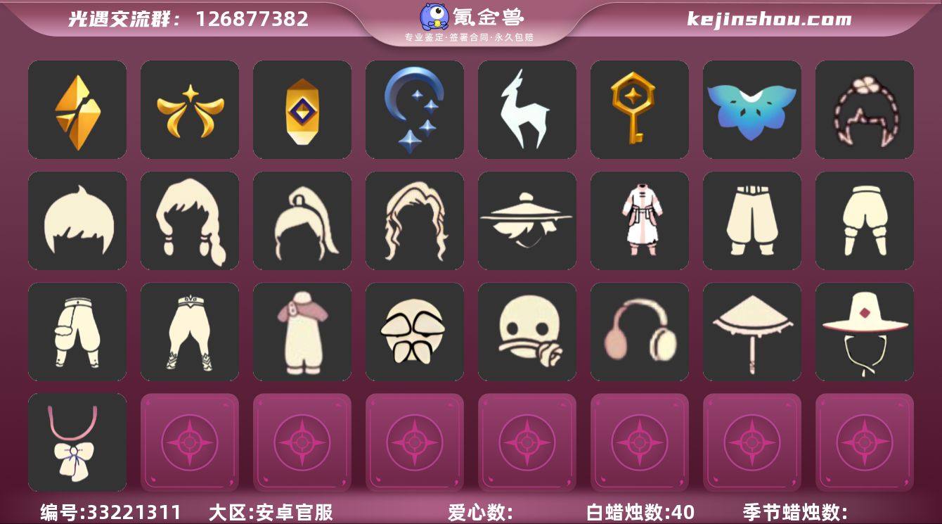 6季武士裤透明蝶翼莲花斗神鹿头饰金鳞耳坠优雅领结 编号:YXB13272 区服:安卓 翼数量:183季卡数:7 资源:蜡烛40 爱心52 红蜡44 已毕业地图:晨岛 雨林 霞谷 暮土 毕业季节: 破晓季 欧若拉季 追忆季 夜行季 九色鹿季 筑巢季 热门礼包:莲花斗篷 橘子 玉兔 四叶草 贝壳 神鹿头饰 金鳞耳坠 优雅领结 热门复刻:背带裤 白棉裤 搓澡巾 灯笼裤 紧身棉裤 连体衣 武士裤 过膝长袍 狐狸面具 老爷爷面具 玫瑰花面具 粗辫 书虫 正太 高马尾 明制帽 箬笠 花环 虚荣 军帽 爱神 樱花头 单片羽毛 红耳机 飘带耳坠 红金斗 黑金斗 小浣熊斗 樱花斗 绿芽斗 海浪斗 彩虹斗 暗彩斗 雨伞 星星灯 女巫茶桌"