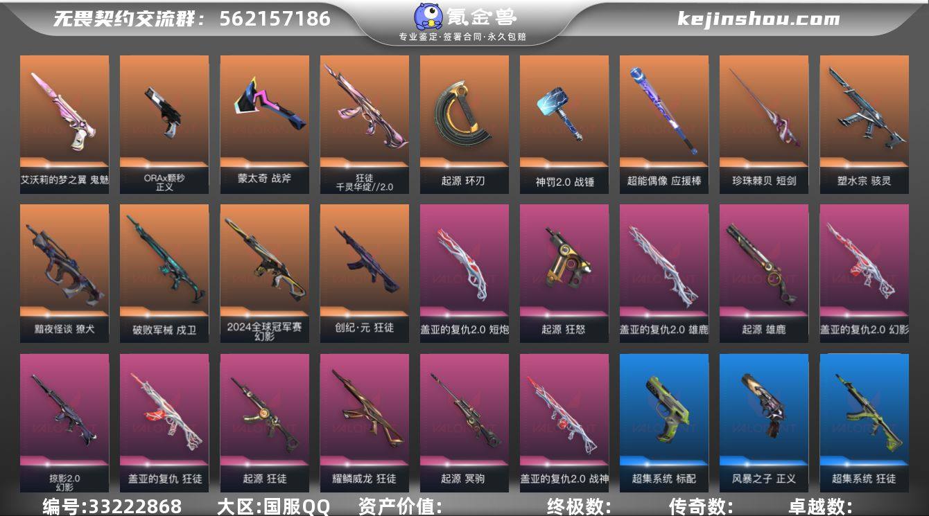 【特价走量】精品手慢无系列!【限定24冠军幻影】 【套装】:回火礼包// V25套装,盖亚的复仇//2.0套装,起源套装【英雄】:幻棱,炼狱,维斯,暮蝶,钛狐,壹决,铁臂,捷风,雷兹,幽影,不死鸟,贤者,猎枭,蝰蛇,零,芮娜,奇乐,尚勃勒,霓虹,斯凯,夜露,星礈,K/O,海神,盖可,黑梦,钢锁【近战武器】:近战武器-珍珠棘贝 短剑,近战武器-超能偶像 应援棒,近战武器-盖亚之愠,近战武器-起源 环刃,近战武器-神罚//2.0 战锤【狂徒】:狂徒-创·纪元,狂徒-千灵华绽//2.0,狂徒-盖亚的复仇,狂徒-起源,狂徒-耀鳞威龙,狂徒-超能偶像【幻影】:幻影-2024全球冠军赛,幻影-盖亚的复仇//2.0,幻影-掠影//2.0,幻影-珍珠棘贝,幻影-聚合之力【戍卫】:戍卫-破败军械,戍卫-超能偶像,戍卫-珍珠棘贝【獠犬】:獠犬-黯夜怪谈,獠犬-采蜜小蜂队,獠犬-复古浪潮【冥驹】:冥驹-起源,冥驹-复古浪潮【飞将】:飞将-聚合之力【莽侠】:莽侠-深海水族【战神】:战神-盖亚的复仇//2.0,战神-采蜜小蜂队,战神-深海水族【判官】:判官-超能偶像,判官-采蜜小蜂队【雄鹿】:雄鹿-盖亚的复仇//2.0,雄鹿-起源,雄鹿-复古浪潮【骇灵】:骇灵-塑水宗,骇灵-珍珠棘贝【蜂刺】:蜂刺-聚...