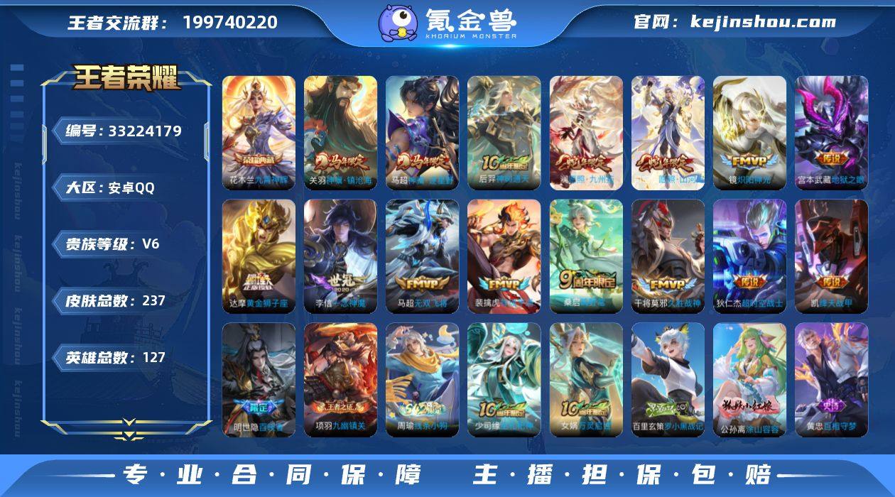 【947604】[18277073]V6 1典藏 15传说 127英雄 237皮肤 可修改实名 男号 【英雄全皮】司空震全皮,蚩奼全皮,影全皮,大禹全皮 【稀有英雄】敖隐(小龙人),大司命,韩信(韩跳跳),夏洛特(夏师傅),艾琳,橘右京(橘子),娜可露露(鸟人),不知火舞,赵云,金蝉(唐僧),戈娅 【荣耀水晶】九霄神辉(木兰典藏) 【传说皮】神骥·镇沧海,神骥·逐星野,神树通天,祥瑞亨通,黄金狮子座,地狱之眼,一念神魔,久胜战神,炽阳神光,无双飞将,绛天战甲(鸡嘴战神),超时空战士-狄仁杰 【珍宝阁皮】妄想食味 【赛季/战令皮】噬灭天穹(s37),古海寻踪(s33),星界游侠,海盐诗旅(s30),擒涛扼浪(s31),潮玩骑兵,奇幻香踪,探海日志(s32),驭风魔法,玲珑珍味,流音漫舞,顽趣-梦奇,地狱燃心,剑破天穹(s35),天穹祈灯(s34),青焰无极,苍威无极,天穹之誓(s36),蔡文姬夏日便利店,虞姬夏日便利店,暖冬·兔眠,朔望之晖,云间偶戏,航海奇遇记,金庭之子(s27),大漠名商(s28),云中旅人(s29) 【史诗皮】百晓客,破空之剑,百相守梦-百里守约,茶境仙,星界战将,器灵·浮梦炉,蒙犽顽岩魄,蔬乡物语(鲁班七号),化蝶舞,怒海争锋,线条小狗-周瑜,九幽镇关,巫礼祀神,灵蛊蚀心,罗小黑战记-百里玄策,万灵启世,涂山容容,龙之律动,藏狐·褐绒,百相守梦-黄忠,百...