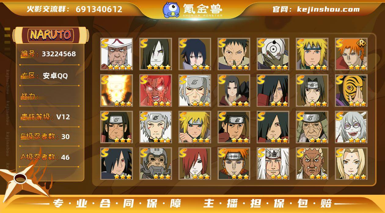 30S级忍者数-46A级忍者数 【S级忍者】:长门「秽土转生」(3星),半藏「秽土转生」(3星),猿飞日斩「秽土转生」(3星),波风水门「秽土转生」(3星),千手扉间「秽土转生」(3星),千手柱间「秽土转生」(3星),宇智波鼬「秽土转生」(3星),宇智波斑「秽土转生」(3星),宇智波带土「忍界大战」(3星),宇智波鼬「须佐能乎」(3星),宇智波斑「木叶创立」(3星),艾「四代目雷影」(3星),自来也(3星),自来也「舞之豪杰」(3星),大蛇丸(4星),纲手(3星),千手柱间(3星),千手扉间(3星),猿飞日斩(4星),宇智波斑(3星),波风水门(3星),药师兜「仙人模式」(3星),神秘面具男(3星),漩涡鸣人「九喇嘛连结」(3星),迈特凯「死门」(3星),佩恩「天道」(3星),佩恩·天道「超」(3星),宇智波佐助「永恒万花筒」(3星),宇智波斑 「白面具」(3星宇智波斑「白面具」),大筒木金式(3星) 【A级忍者】:艾「青年」(2星),长门「青年」(2星),波风水门「青年」(2星),波风水门「新春限定」(2星),达鲁伊「博人传」(2星),迪达拉(2星),迪达拉「秽土转生」(2星),大蛇丸「晓」(2星),奇拉比(3星),奇拉比「忍界大战」(2星),飞段(5星),飞段「死司凭血」(3星),干柿鬼鲛(5星),漩涡鸣人「仙人模式」(3...