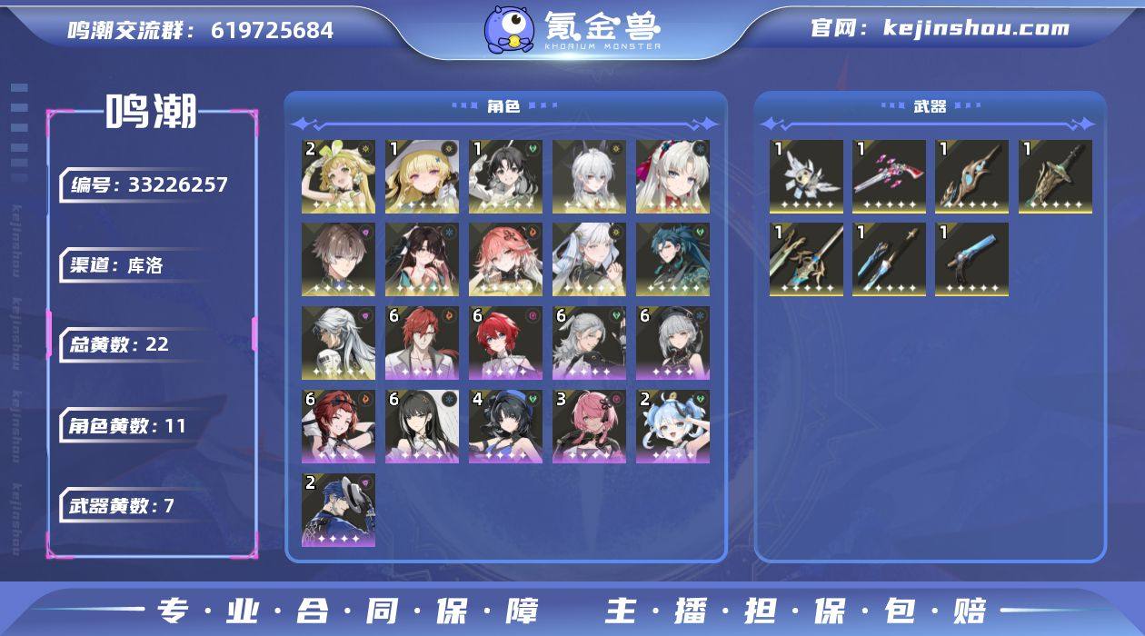 【11菲比01今汐01珂莱塔01忌炎8up4专武 地图探索度低可玩性强】总黄数:21 联觉等级:72索拉等级:8星声数量:131 拥有五星共鸣者:忌炎,鉴心,卡卡罗,维里奈,今汐,长离,折枝,相里要,珂莱塔,菲比,赞妮 1鸣五星共鸣者:1鸣鉴心,1鸣维里奈,1鸣菲比 0鸣五星共鸣者:0鸣忌炎,0鸣卡卡罗.0鸣今汐,0鸣长离,0鸣折枝,0鸣相里要,0鸣珂莱塔,0鸣赞妮 拥有五星武器:苍鳞千嶂,千古洑流,停驻之烟,时和岁稔,死与舞,和光回唱, 血誓盟约 1鸣五星武器:1鸣苍鳞千嶂,1鸣千古洑流,1鸣停驻之烟,1鸣时和岁稔1鸣死与舞,1鸣和光回唱,1鸣血誓盟约
