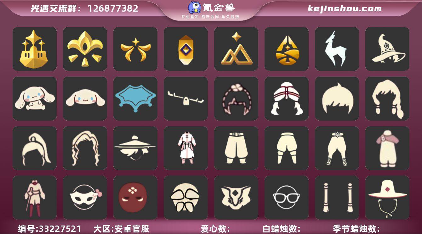 7季魔法耳坠黑框眼镜蝙蝠TGC武士裤多礼包 编号:区服:安卓 翼数量:115 资源:蜡烛:28 爱心:245 红蜡:2 季卡数:12 已毕业地图:晨岛 云野 雨林 霞谷 暮土 禁阁 毕业季节:半魔法季 梦想季 集结季 欧若拉季 追忆季 拾光季 归巢季 九色鹿季 热门礼包:蝙蝠斗篷 暖冬瑞雪 TGC 福娃套 巫师帽 优雅领巾 雪人靴 兔拖 桔子 小鱼 兔子 大耳狗发饰 四叶草 神鹿鹿角 金鳞耳坠 KFC斗篷 跷跷板 大耳狗抱枕 热门复刻:背带裤 海洋武士裤 彩虹链带裤 五周年裤 沙滩裤 人字拖 武士裤 白棉裤 毛靴裤 绒边棉裤 灯笼裤 紧身裤 武士裤 雪人衣 击剑裤 过膝长袍 矮人满级 黄鼠狼面具 老爷爷面具 红兔面具 星绘面具 贴花面具 玫瑰面具 黑脸面具 黑框眼镜 毛绒领子 宴会围巾 蝴蝶结发型 公主头 粗辫 书虫 正太 高马尾 明制帽 郡主 箬笠 花环 虚荣 军帽 爱神 失孤发型 猫猫头 疯帽 单片羽毛 双边耳坠 飘带耳坠 樱花斗篷 绿芽斗篷 海浪斗篷 彩虹斗篷 女巫桌 "