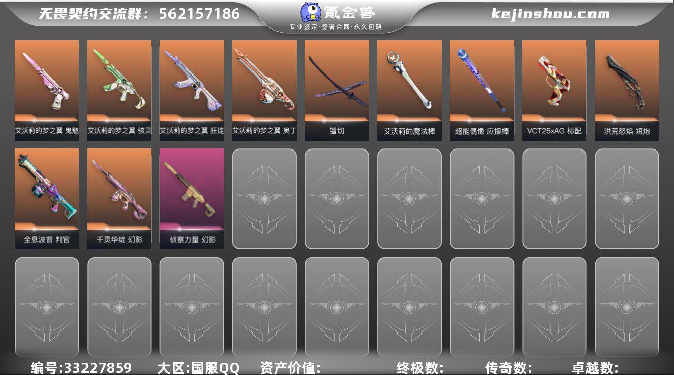 【 特价走量】精品手慢无系列!【猫猫全套】 【拥有套装】艾沃莉的梦之翼套装(艾沃莉的梦之翼-狂徒,艾沃莉的梦之翼-奥丁,艾沃莉的梦之翼-骇灵,艾沃莉的梦之翼-鬼魅,艾沃莉的魔法棒) 【拥有近战武器】超能偶像-应援棒/镭切/ 【拥有步枪】千灵华绽-幻影/侦察力量-幻影/超能偶像-戍卫/超能偶像-狂徒/聚合之力-幻影/采蜜小蜂队-獠犬/ 【拥有狙击枪】聚合之力-飞将/ 【拥有机枪】采蜜小蜂队-战神/ 【拥有冲锋枪】聚合之力-蜂刺/ 【拥有霰弹枪】全息波普-判官/超能偶像-判官/采蜜小蜂队-判官/ 【拥有手枪】VCT25-x-AG-标配/洪荒怒焰-短炮/星际猎兵-标配/阿特拉斯指挥部-标配/超限闪存-正义/超能偶像-标配/游戏结束-正义/火线狂怒/星云暗涌-鬼魅/纳米打击-正义/聚合之力-狂怒/采蜜小蜂队-鬼魅/ 【稀有挂件】V25第六幕铂金挂饰/V25第三幕青铜挂饰/第九季白银挂饰/终章猫猫木乃伊挂饰/无畏契约GO第一卷芮娜挂饰/无畏契约GO第一卷零挂饰/熔岩灯挂饰/袖珍捷风挂饰/糖葫芦挂饰/超能偶像挂饰/迷你浓缩挂饰/采蜜小蜂队挂饰/ 【卡面信息】双城之战拥抱卡面/我眼中的世界卡面/超能偶像卡面/梦之翼艾沃莉卡面/梦之翼露娜猫卡面
