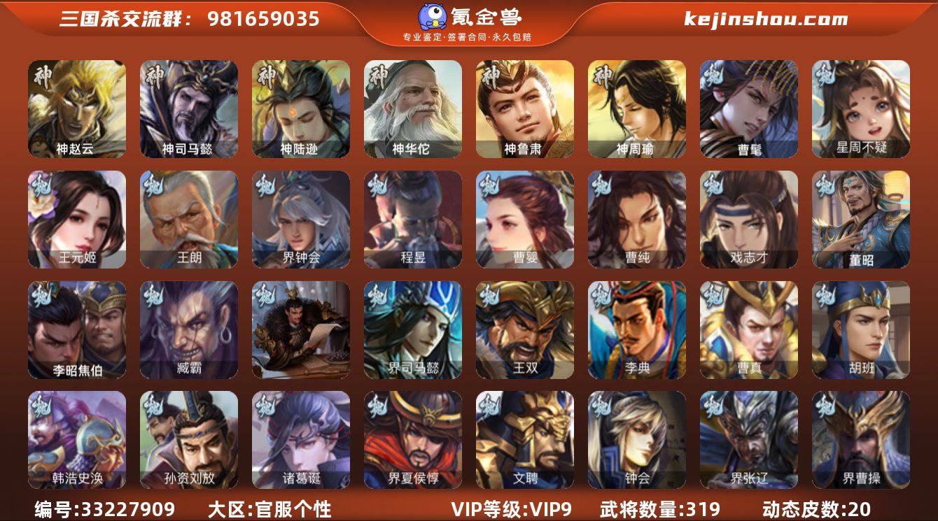 神赵云,神司马懿,神陆逊,神华佗,神鲁肃,曹髦,星周不疑,王元姬,王朗,界钟会,曹婴,曹纯,戏志才,程昱,马云騄,谋夏侯氏,张星彩,沙摩柯,谯周,花鬘,董允,界徐盛,谋公孙瓒,左慈,郑玄,麹义,沮授,界李儒,谋张角,谋吕布,兀突骨,士燮,神周瑜,SP关羽,SP曹仁,SP蔡文姬,乐进,曹昂,诸葛诞,朱灵,文聘,SP姜维,钟会,曹冲,郭淮,满宠,界王异,界曹操,界司马懿,界夏侯惇,界张辽,界郭嘉,李典,曹真,韩浩史涣,陈群,曹叡,钟繇,司马朗,郭皇后,孙资刘放,鲁芝,界荀彧,杜畿,界曹丕,界曹植,卞夫人,华歆,袁涣,王双,崔琰,毛玠,谋徐晃,界曹休,牵招,胡班,李昭焦伯,臧霸,唐咨,董昭,SP孙尚香,关银屏,夏侯霸,马良,关兴张苞,廖化,界马岱,关平,简雍,刘封,界法正,界关兴张苞,界刘备,界赵云,界马超,SP徐庶,吴懿,周仓,张松,夏侯氏,糜竺,马忠,李严,界黄月英,界诸葛亮,赵统赵广,严颜,界伊籍,界卧龙诸葛,界庞统,陈到,张翼,邓芝,傅肜,费祎,糜夫人,王甫赵累,界周仓,宗预,刘巴,彭羕,谋黄月英,界张嶷,谋姜维,谋张飞,吴班,霍峻,诸...