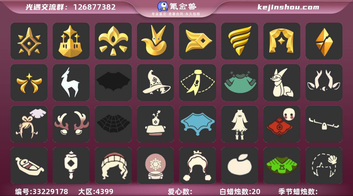 【XQ0108】 ✅10季狗枭羽毛玫瑰,巫师蝙蝠围巾TGC绊爱星球神鹿福娃秋千 ✅区服 vivo ✅最高:1.270最矮:13.270目前:1.741号 ✅资源:蜡烛:20爱心:101 翼数量:203 ✅毕业地图:全毕业 ✅毕业季节:预言季,梦想季,集结季,小王子季,风行季,潜海季,表演季,破晓季,欧若拉季,九色鹿季 ✅稀有礼包:女巫长裙,温暖绒帽,多彩绒帽,巫师帽,绊爱套装,桔子,鲤跃龙门,雪花发卡,贝壳发卡,玉兔,四叶草,星月头冠,神鹿头饰,彩虹耳机,枯角,圣诞鹿角,TGC斗篷,王子围巾,星球夹克,新春福娃,年年有余,蝙蝠斗,蛛网斗篷,暖冬瑞雪,白雪斗篷,粽叶斗篷,中秋灯笼,夏日阳伞,秋千,跷跷板,花憩茶桌,狐狸背包,小船,冥龙南瓜,水晶球 ✅热门物品:阿努比斯,白枭,白棉裤,搓澡巾,灯笼裤,武士裤,矮人面具,黑脸,公主头,粗辫,书虫,正太,高马尾,明制帽,箬笠,花环,虚荣,樱花,猫猫头,红耳机,竖琴,雨伞