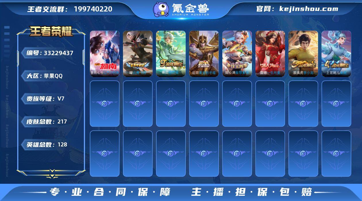 苹果Q 可二次 1珍品6传说 128英雄217皮肤 江户川柯南 神骥赴朔漠 神骥越千峰 鸣野蒿 云鹰飞将 黄金射手座 末日机甲女 百晓客 一生所爱 匿光侦查者 朔望之晖 梁祝 玫瑰异探 织梦人 灵蛊蚀心 燃音魔法 电玩爆裂旋风 无限星赏官 原初探秘者 李小龙 水晶猎龙者 暗隐猎兽者 猫狗日记男 特工魅影 曙光守护者 特工战影 黄金分割率 舞动绿茵 妄想食味 逐浪之夏 心灵战警 修罗 晚萤 魅语 白龙吟 千年之狐 紫霞仙子 圣诞恋歌 幽灵船长 乘风破浪 末日机甲男 星夜王子 永昼 节奏热浪 街头霸王 摇滚巨星 缤纷独角兽 鬼剑武藏 德古拉伯爵 冰雪圆舞曲 花好人间 狰 饕餮 烛龙 重明 穷奇 御狮 御霄 御旌 御銮 朔风刀 混沌棋 疑决卦 克喵 演武夺筹 驱傩正仪 未来纪元赵云 女仆咖啡 云中旅人 海盐诗旅 皇家上将 擒涛扼浪 魅力维加斯 探海日志 水果甜心 古海寻踪 蔬乡物语鲁班 天穹祈灯 奇幻香踪 驭风魔法 江河有灵 乱世虎臣 鹰眼统帅 魔术师 王者荣耀账号