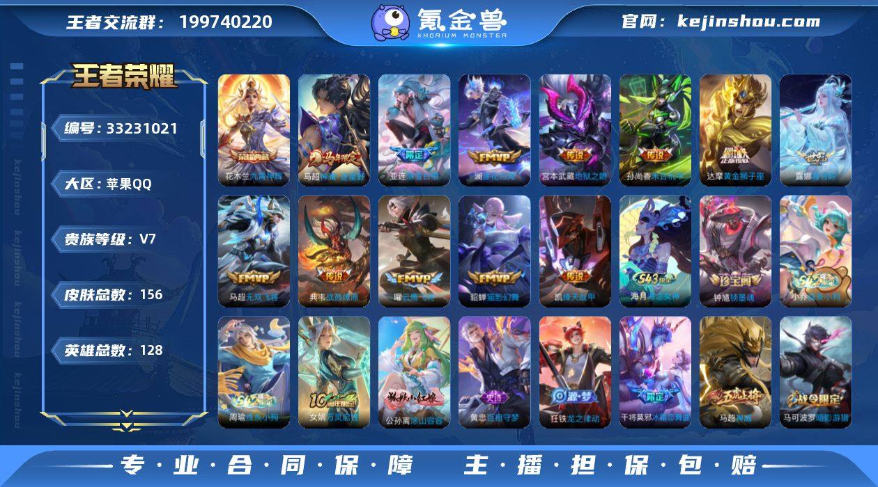 苹果Q-V7-最强王者段位-127英雄-155皮肤-1典藏皮肤-12传说-48史诗 【英雄全皮】:孙权全皮 【荣耀典藏】:花木兰九霄神辉 【传说皮肤】:马超神骥逐星野,亚连落雪白狼,典韦战鼓燎原,澜逐花归海,露娜霜月吟,马超无双飞将,铠绛天战甲,曜云鹰飞将,貂蝉猫影幻舞,达摩黄金狮子座,孙尚香末日机甲,宫本武藏地狱之眼 【限定皮肤】:狄仁杰阴阳师,赵云皇家上将,庄周高山流水,高渐离玩趣恶龙,阿轲迷踪丽影,吕布御风骁将,元歌云间偶戏,夏侯惇朔风刀,马可波罗暗影游猎,狄仁杰魔术师,狄仁杰万华元夜,达摩沙漠行僧,项羽海滩派对,项羽霸王别姬,老夫子醍醐杖,关羽冰锋战神,程咬金演武夺筹,刘邦夺宝奇兵,亚瑟潮玩骑士王,钟馗驱傩正仪,杨玉环遇见飞天,干将莫邪冰霜恋舞曲,雅典娜单词大作战,雅典娜黎明之约,蔡文姬繁星吟游,鬼谷子原初探秘者,苏烈千军破阵,百里玄策原初追逐者,弈星混沌棋,明世隐疑决卦,裴擒虎李小龙,裴擒虎擒涛扼浪,云中君纤云弄巧,猪八戒西部大镖客,蒙犽狂想玩偶喵,亚连落雪白狼 【年限皮肤】:吕布御风骁将 【赛季限定】:夏侯惇朔风刀,弈星混沌棋,明世隐疑决卦,老夫子醍醐杖,鬼谷子原初探秘者,狄仁杰万华元夜,程咬金演武...