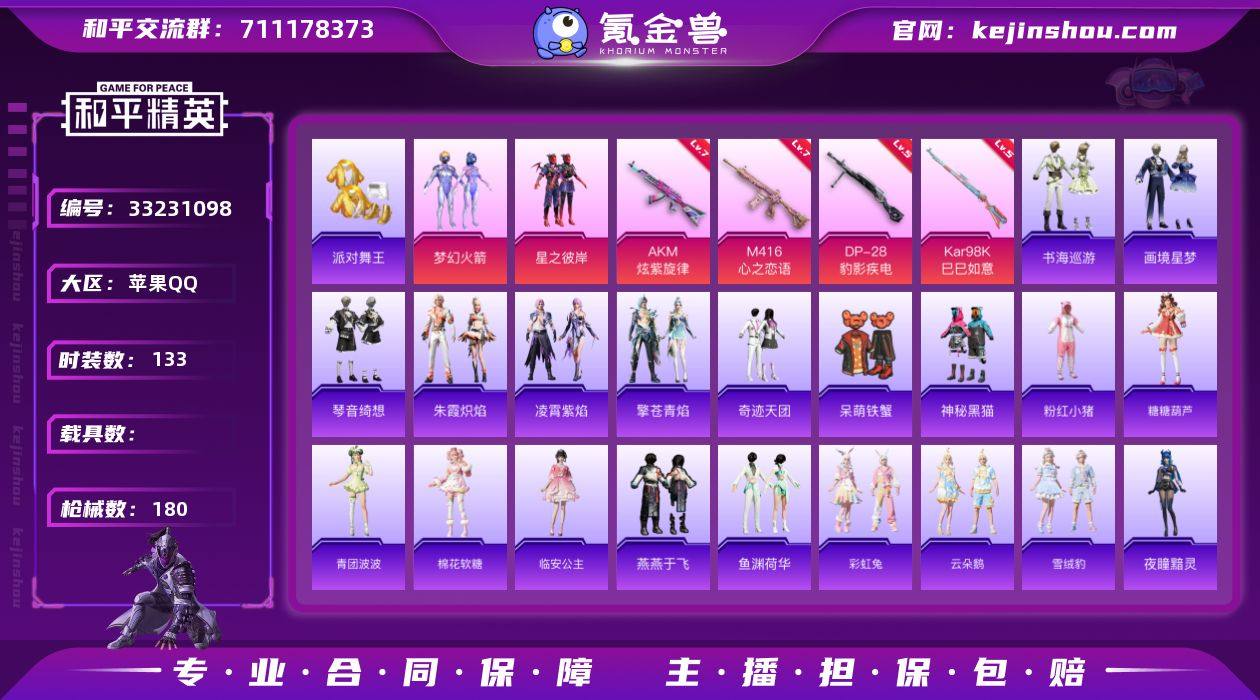 无二次-苹果 手Q【梦幻火箭/金鞋子】-2粉装-6特效枪-0载具-2粉色飞行器-54658热力值-14王牌印记-133套装-180枪皮 【热门品类】:粉装-梦幻火箭,套装-派对舞王,套装-粉红小猪 【粉色套装】:粉装-梦幻火箭,粉装-星之彼岸 【粉色枪皮等级】:AKM-炫紫旋律(七级),M416-心之恋语(七级),AKS-74U-森灵之息(五级),Kar98K-巳巳如意(五级),Mk14-福马献瑞(五级),DP-28-豹影疾电(五级) 【粉色枪皮】:AKM-炫紫旋律,M416-心之恋语,AKS-74U-森灵之息,Kar98K-巳巳如意,Mk14-福马献瑞,DP-28-豹影疾电 【粉色飞行器】:炫彩糖果飞行器,梦幻火箭飞行器 【粉色降落伞】:春暖花开降落伞,星之彼岸降落伞,垂柳戏鸭降落伞,星梦奇缘降落伞,临安公主降落伞,彩虹独角兽降落伞,荧海星豚降落伞,喜羊羊与灰太狼降落伞,炫彩糖果降落伞 【稀有套装】:套装-雪国风尚,套装-炫彩糖果,套装-马上有钱,套装-迅捷龙虾,套装-糖糖葫芦,套装-青团波波,套装-棉花软糖,角色-临安公主,套装-燕燕于飞,套装-鱼渊荷华,套装-彩虹兔,套装-云朵鹅,套装-雪绒豹,角色-夜瞳黯灵,套装-朱霞炽焰,套装-凌霄紫焰,套装-擎苍青焰,套装-书海巡游,套装-画境星梦,套装-琴音绮想,套装-雨过天青,...