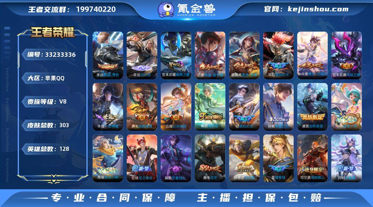 BHC12055,1星元,苹果Q-V8-最强王者段位-128英雄-303皮肤-1典藏皮肤-1无双-12传说-81史诗 【英雄全皮】:敖隐全皮,蒙恬全皮,空空儿全皮,影全皮 【荣耀典藏】:李白鸣剑曳影 【无双皮肤】:李信问心剑 【传说皮肤】:云缨神骥越千峰,云缨幻光神枪,桑启鸣野蒿,典韦战鼓燎原,孙尚香乘龙问璇玑,马超琥珀纪元,铠琥珀纪元,孙策挚爱之约,裴擒虎寅虎赤拳,虞姬启明星使,李信一念神魔,宫本武藏地狱之眼 【限定皮肤】:暃埋骨钱,姜子牙天穹之誓,狄仁杰阴阳师,赵云皇家上将,嬴政优雅恋人,钟无艳超时空战士,白起夜都怪侠,芈月白晶晶,芈月幻夜卜梦,吕布猎兽之王,元歌无心,甄姬落雪兰心,典韦岱宗,狄仁杰魔术师,达摩沙漠行僧,项羽海滩派对,老夫子航海奇遇记,兰陵王金庭之子,孙悟空孙行者,李元芳银河之约,李元芳云中旅人,虞姬启明星使,杨戬潮玩骑兵,干将莫邪胡桃夹子,鬼谷子五谷丰年,黄忠火炮绅士,百里玄策原初追逐者,梦奇顽趣,沈梦溪大漠名商,明世隐吟游魔法,裴擒虎寅虎赤拳,裴擒虎擒涛扼浪,云中君纤云弄巧,孙策挚爱之约,上官婉儿梁祝,嫦娥拒霜思,嫦娥暖冬兔眠,西施玲珑珍味,鲁班大师探海日志,桑启海盐诗旅,暃星界游侠,戈娅驭风魔法...