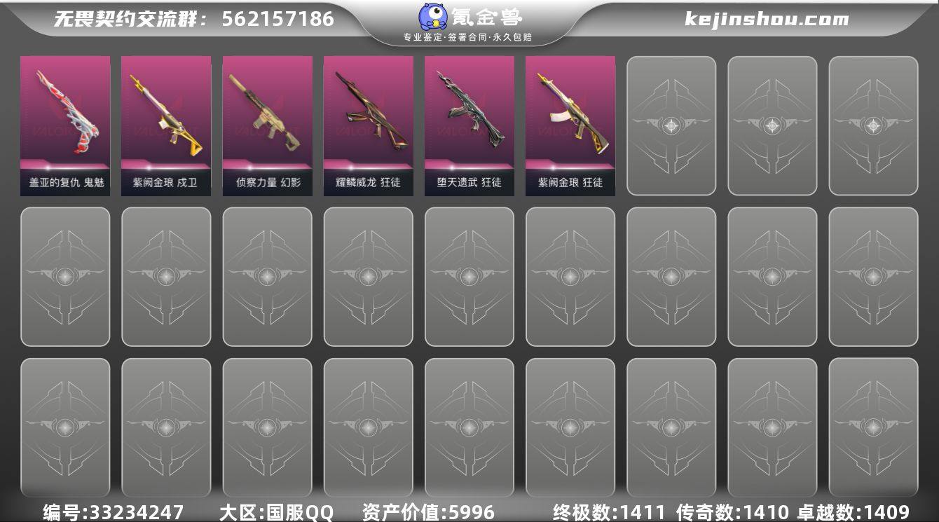【英雄】:幻棱,炼狱,暮蝶,壹决,铁臂,捷风,雷兹,不死鸟,贤者,猎枭,零,芮娜,奇乐,尚勃勒,霓虹,斯凯,夜露,K/O,海神,盖可,黑梦,钢锁 【近战武器】:近战武器-碎心裂刃,近战武器-神之刃,近战武器-起源 环刃,近战武器-神罚 军刀,近战武器-阿特拉斯指挥部 甩棍,近战武器-星际猎兵 短剑 【狂徒】:狂徒-堕天遗武,狂徒-耀鳞威龙,狂徒-紫阙金琅 【幻影】:幻影-混沌序曲//2.0,幻影-侦察力量 【戍卫】:戍卫-紫阙金琅 【标配】:标配-黯夜怪谈 【正义】:正义-掠影 【鬼魅】:鬼魅-盖亚的复仇 【卡面】:无畏契约GO!第一卷:芮娜 卡面,无畏契约GO!第一卷:零 卡面,代号红色 卡面,新兵报到 卡面,V契约 卡面,无畏契约 卡面 【喷漆】:买装还是存钱 喷漆,放下武器 喷漆,胜利属于无畏契约 喷漆,GLHF 喷漆,无畏契约 喷漆 【挂饰】:天外飞客 挂饰,无畏契约 纪念币 挂饰