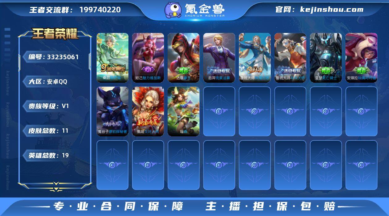 【954131】安卓Q-V0-秩序白银III段位-19英雄-11皮肤-1传说-1史诗 【传说皮肤】:桑启鸣野蒿 【限定皮肤】:鬼谷子原初探秘者,鲁班大师探海日志 【赛季限定】:鬼谷子原初探秘者,鲁班大师探海日志 【史诗皮肤】:妲己魅力维加斯 【其他皮肤】:安琪拉玩偶对对碰,亚瑟死亡骑士,达摩拳王,甄姬花好人间,鬼谷子原初探秘者,鲁班大师乓乓大师,鲁班大师探海日志,后羿完美运算,瑶森 【