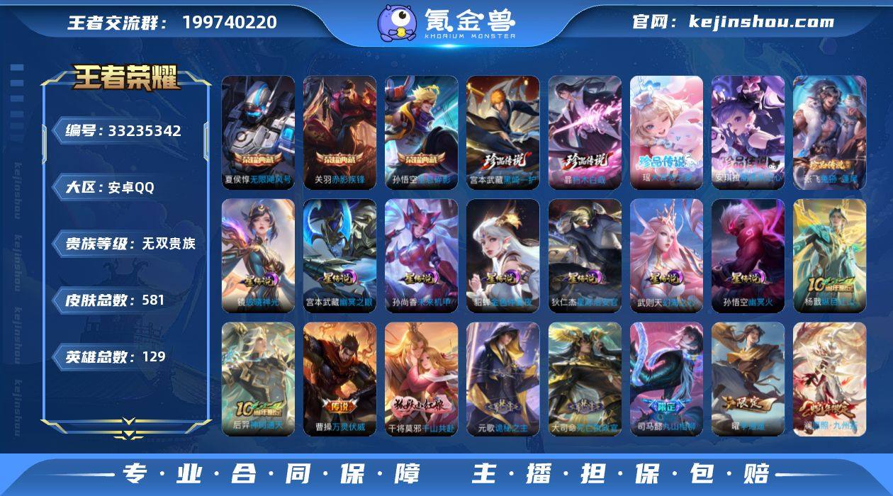 【954124】安卓Q-V11-最强王者段位-128英雄-574皮肤-3典藏皮肤-1典藏英雄-5珍品传说-89传说-200史诗 【英雄全皮】:墨子全皮,刘禅全皮,高渐离全皮,扁鹊全皮,白起全皮,元歌全皮,达摩全皮,司马懿全皮,露娜全皮,孙权全皮,朵莉亚全皮,娜可露露全皮,橘右京全皮,牛魔全皮,苍全皮,女娲全皮,雅典娜全皮,太乙真人全皮,鬼谷子全皮,黄忠全皮,苏烈全皮,李信全皮,盾山全皮,大司命全皮,鲁班大师全皮,蒙恬全皮,阿古朵全皮,夏洛特全皮,司空震全皮,金蝉全皮,空空儿全皮,影全皮,少司缘全皮 【荣耀典藏】:武则天英雄,孙悟空全息碎影,夏侯惇无限飓风号,关羽赤影疾锋 【珍品传说】:张飞兔狲蓬尾,瑶大耳狗之梦,安琪拉酷洛米之心,暃朽木白哉,宫本武藏黑崎一护 【传说皮肤】:杨戬纵目迁山,后羿神树通天,曹操万灵伏威,干将莫邪千山共赴,元歌诡秘之主,大司命死亡执政官,司马懿九山相柳,司空震愿照山河定,女娲愿照千秋盛,妲己愿照众生和,澜愿照九州拓,蔡文姬愿照福禄聚,虞姬愿照岁时盈,云缨幻光神枪,裴擒虎祥瑞亨通,桑启鸣野蒿,夏侯惇霜北刀,朵莉亚心动手记,墨子黄金天蝎座,海月金乌负日,亚连落雪白狼,典韦战鼓燎原,孙尚香乘龙问璇玑,...