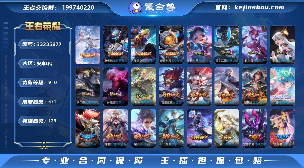 【954382】安卓Q-V10-至尊星耀III段位-129英雄-571皮肤-4典藏皮肤-1典藏英雄-80传说-199史诗 【英雄全皮】:达摩全皮,露娜全皮,刘邦全皮,孙权全皮,娜可露露全皮,橘右京全皮,鬼谷子全皮,黄忠全皮,沈梦溪全皮,狂铁全皮,盾山全皮,猪八戒全皮,鲁班大师全皮,蒙恬全皮,镜全皮,阿古朵全皮,夏洛特全皮,金蝉全皮,莱西奥全皮,戈娅全皮,空空儿全皮,影全皮 【荣耀典藏】:武则天英雄,孙悟空全息碎影,夏侯惇无限飓风号,鲁班七号星空梦想,伽罗最初的交响 【传说皮肤】:后羿神树通天,云缨幻光神枪,王昭君映山客,桑启鸣野蒿,庄周牧神诗旅,马超琥珀纪元,铠琥珀纪元,澜逐花归海,艾琳觅芳踪,露娜霜月吟,大乔时之奇旅,吕布遇见神鼓,云缨鹤归松栖,上官婉儿妄想奇谈,马可波罗妄想实况,东皇太一灼幽烈阳,诸葛亮鹤羽星尊,公孙离记忆之芯,夏洛特浮生妄,干将莫邪画中仙,花木兰燃星之曲,虞姬无限倾心,项羽无限倾心,伽罗炽翼辉光,孙悟空齐天大圣,小乔山海琳琅生,曜山海苍雷引,李信山海炽霜斩,李白诗剑行,狄仁杰神器狴犴令,不知火舞绯月行,王昭君星穹之声,百里守约碎云,橘右京枫霜尽,娜可露露前尘镜,孙尚香音你闪耀,马超无双飞将,露娜启示...