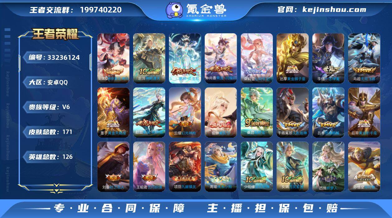 【954377】安卓Q-V6-最强王者段位-126英雄-171皮肤-1典藏皮肤-17传说-43史诗 【英雄全皮】:空空儿全皮 【荣耀典藏】:安琪拉颠倒童话魔镜 【传说皮肤】:后羿神树通天,妲己愿照众生和,云缨幻光神枪,桑启鸣野蒿,朵莉亚心动手记,墨子黄金天蝎座,貂蝉曦玄引,孙尚香乘龙问璇玑,赵云乘龙铭钟鼎,吕布怒海麟威,马超无双飞将,王昭君乞巧织情,李信一念神魔,刘备时之恋人,干将莫邪久胜战神,达摩黄金狮子座,后羿黄金射手座 【限定皮肤】:蒙犽顽岩魄,姜子牙天穹之誓,狄仁杰阴阳师,赵云皇家上将,狄仁杰魔术师,项羽海滩派对,孙悟空孙行者,雅典娜黎明之约,嫦娥拒霜思,西施至美乘鲤谣,张良古海寻踪,高渐离燃音魔法,妲己灵卜魔法,鬼谷子天穹祈灯,伽罗琥珀纪元,姬小满妄想食味,安琪拉乘龙聚宝船,孙尚香乘龙问璇玑,赵云乘龙铭钟鼎,貂蝉曦玄引,沈梦溪龙舞盛年,刘邦剑破天穹,程咬金群星魔术团,镜青焰无极,项羽苍威无极,朵莉亚心动手记,海诺心动手记,刘备异域游侠,周瑜熔金海岸 【年限皮肤】:孙尚香乘龙问璇玑,赵云乘龙铭钟鼎,安琪拉乘龙聚宝船,妲己愿照众生和 【赛季限定】:张良古海寻踪,鬼谷子天穹祈灯,刘邦剑破天穹,姜子牙天穹之誓,东皇...