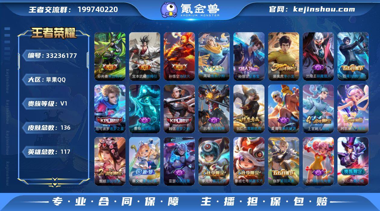 【954489】苹果Q-V0-永恒钻石II段位-117英雄-136皮肤-3传说-23史诗 【传说皮肤】:宫本武藏惊梅引,孙尚香末日机甲,孙悟空地狱火 【限定皮肤】:白起狰,狄仁杰阴阳师,虞姬凯尔特女王,赵云皇家上将,鲁班七号狮舞东方,扁鹊炼金王,芈月重明,周瑜赤莲之焰,夏侯惇朔风刀,甄姬游园惊梦,曹操烛龙,典韦穷奇,马可波罗逐梦之星,狄仁杰魔术师,狄仁杰万华元夜,项羽海滩派对,老夫子醍醐杖,程咬金演武夺筹,韩信逐梦之影,兰陵王驯魔猎人,孙悟空至尊宝,牛魔御旌,李元芳银河之约,钟馗神迹守卫,蔡文姬繁星吟游,太乙真人饕餮,鬼谷子原初探秘者,弈星混沌棋,沈梦溪星空之诺,明世隐疑决卦,裴擒虎李小龙,裴擒虎擒涛扼浪,狂铁御狮,米莱狄御霄,盾山御銮,上官婉儿梁祝,鲁班大师探海日志,桑启海盐诗旅,阿古朵江河有灵,张良古海寻踪,鬼谷子天穹祈灯 【赛季限定】:扁鹊炼金王,虞姬凯尔特女王,白起狰,太乙真人饕餮,曹操烛龙,芈月重明,典韦穷奇,狂铁御狮,米莱狄御霄,牛魔御旌,盾山御銮,夏侯惇朔风刀,弈星混沌棋,明世隐疑决卦,老夫子醍醐杖,鬼谷子原初探秘者,狄仁杰万华元夜,程咬金演武夺筹,桑启海盐诗旅,裴擒虎擒涛扼浪,鲁班大师探海日志,张...