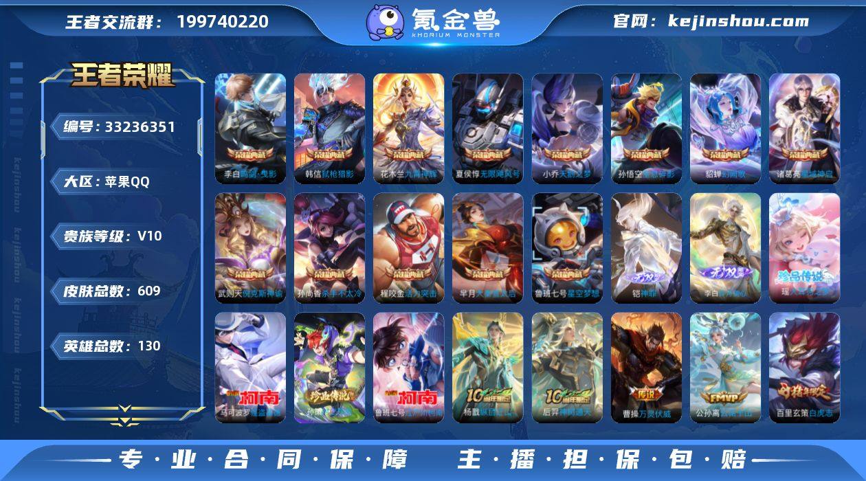 【954515】苹果Q-V10-最强王者段位-129英雄-606皮肤-13典藏皮肤-1典藏英雄-2无双-4珍品传说-87传说-203史诗 【英雄全皮】:廉颇全皮,嬴政全皮,阿轲全皮,孙膑全皮,扁鹊全皮,白起全皮,典韦全皮,李白全皮,刘邦全皮,孙权全皮,苍全皮,女娲全皮,雅典娜全皮,黄忠全皮,梦奇全皮,狂铁全皮,米莱狄全皮,猪八戒全皮,鲁班大师全皮,澜全皮,阿古朵全皮,桑启全皮,莱西奥全皮,戈娅全皮,空空儿全皮,影全皮,姬小满全皮 【荣耀典藏】:武则天英雄,孙悟空全息碎影,武则天倪克斯神谕,夏侯惇无限飓风号,小乔天鹅之梦,孙尚香杀手不太冷,鲁班七号星空梦想,芈月大秦宣太后,程咬金活力突击,李白鸣剑曳影,诸葛亮星域神启,花木兰九霄神辉,貂蝉幻阙歌,韩信弑枪猎影 【无双皮肤】:铠神罪,李白碎月剑心 【珍品传说】:瑶大耳狗之梦,孙策时之奇旅,鲁班七号江户川柯南,马可波罗怪盗基德 【传说皮肤】:杨戬纵目迁山,后羿神树通天,曹操万灵伏威,公孙离云诺千山,杨玉环星之鸣奏,司空震愿照山河定,女娲愿照千秋盛,妲己愿照众生和,澜愿照九州拓,蔡文姬愿照福禄聚,虞姬愿照岁时盈,云缨幻光神枪,裴擒虎祥瑞亨通,嬴政玄雷天君,王昭君映山客,桑启鸣野蒿,庄...