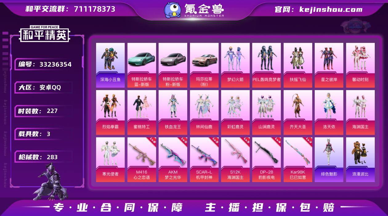 【954525】公主号-深海小丑鱼/小丑鱼/浪漫波比/绒宝小鹅/青涩年华/梦幻火箭/扶摇飞仙/馨动时刻/铁血龙王/林间仙鹿/彩虹鹿灵/山涧鹿灵/烈焰拳霸/蜜桃特工/洛天依/星之彼岸/齐天大圣/SCARL机甲封神5级/M4心之恋语6级/AK梦之光华5级/S12K海渊国主5级/玛莎拉蒂(粉)/特斯拉(粉)/特斯拉(蓝)【15粉装-6粉枪-3载具】没战神框hp6543-94533热力值-6王牌印记-227套装-283枪皮 【热门品类】:粉装-梦幻火箭,套装-深海小丑鱼,套装-小丑鱼,套装-忍者信条,套装-浪漫波比,套装-粉红小猪 【粉色套装】:粉装-梦幻火箭,粉装-PEL轰鸣竞梦者,粉装-扶摇飞仙,粉装-星之彼岸,粉装-馨动时刻,粉装-烈焰拳霸,粉装-蜜桃特工,粉装-铁血龙王,粉装-林间仙鹿,粉装-彩虹鹿灵,粉装-山涧鹿灵,粉装-齐天大圣,角色-洛天依,粉装-海渊国主,粉装-寒光使者 【粉色枪皮等级】:AKM-梦之光华(五级),SCAR-L-机甲封神(五级),M416-心之恋语(六级),Kar98K-巳巳如意(三级),S12K-海渊国主(五级),DP-28-豹影疾电(四级) 【粉色载具】:特斯拉Roadster(水滴蓝),特斯拉Roadster(沁心粉),玛莎拉蒂Ghibli(粉) 【粉色枪皮】:AKM-梦之光华,SCAR-L-机甲封神,M416-心之恋语,Kar98K-巳巳如意,S12K-海...