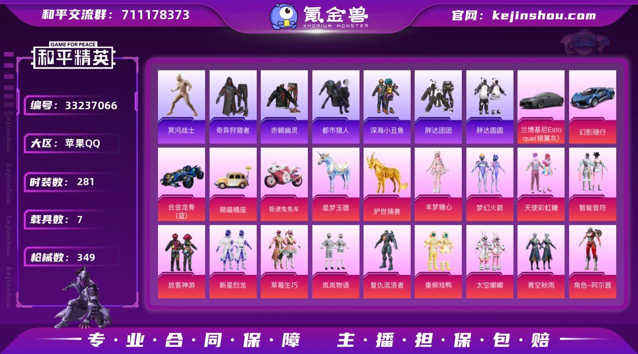 【954702】素材号-地铁满天赋-羊梦糖心/M4风花雪月7级/M4心之恋语4级/8号机/蓝螳螂/熔岩游骑兵面罩/木乃伊/深海小丑鱼/小丑鱼/赤蝎/都市/奇异狩猎者/浪漫天命/老六服/红眼罩/迅捷狂鲨/狂沙舞者/熔岩游骑兵夹克/火箭少女/智能音符/新星烈龙/复仇流浪者/AK星际浪客6级/萌喵橘座/护世瑞兽/星梦玉骢/合金龙骨(蓝)/兰博基尼(灰)/幻影随行/极速兔兔(17粉装7粉枪7载具)没战神框HP6871-5粉色飞行器-126515热力值-15王牌印记-281套装-349枪皮 【热门品类】:粉装-梦幻火箭,套装-浪漫天命,套装-赤蝎幽灵,套装-都市猎人,套装-冥河战士,套装-深海小丑鱼,套装-小丑鱼,套装-奇异狩猎者,角色-军刀雅典娜,套装-胖达团团,套装-胖达圆圆,套装-金羽特工,套装-龟仙人,套装-暗影哥特,套装-浪漫波比,套装-粉红小猪,套装-摄影小熊猫,套装-糯粉咩咩,角色-8号机,角色-Mark.06,熔岩游骑兵连帽夹克 【粉色套装】:粉装-天使彩虹糖,粉装-梦幻火箭,粉装-智能音符,粉装-放客神游,粉装-新星烈龙,粉装-草莓生巧,粉装-岚岚物语,角色-复仇流浪者,粉装-垂柳戏鸭,粉装-太空嘟嘟,粉装-青空秋雨,角色-阿尔茜,角色-幻影,角色-圣堂之誓,角色-星梦奇缘,粉装-金丰海韵,角色-羊梦...